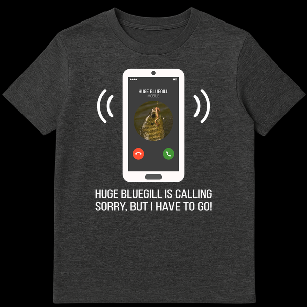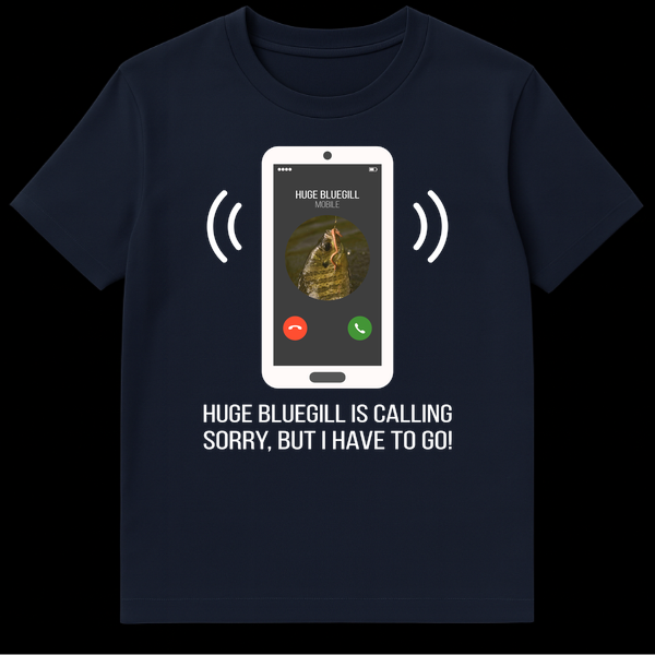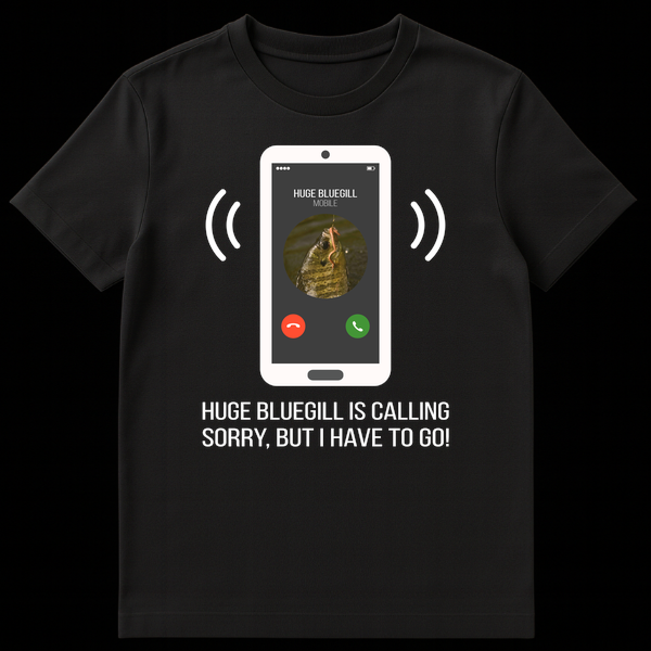 Prioritize your passion with this hilarious bluegill fishing t-shirt! Featuring a humorous phone screen graphic showing “HUGE BLUEGILL IS CALLING,” it perfectly captures that “Sorry, but I have to go!” feeling when the fish are biting. This design is ideal for any dedicated angler who puts their fishing adventures first.