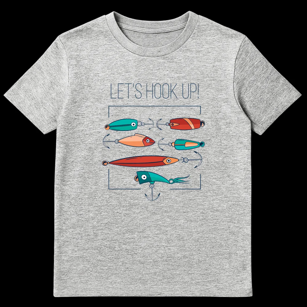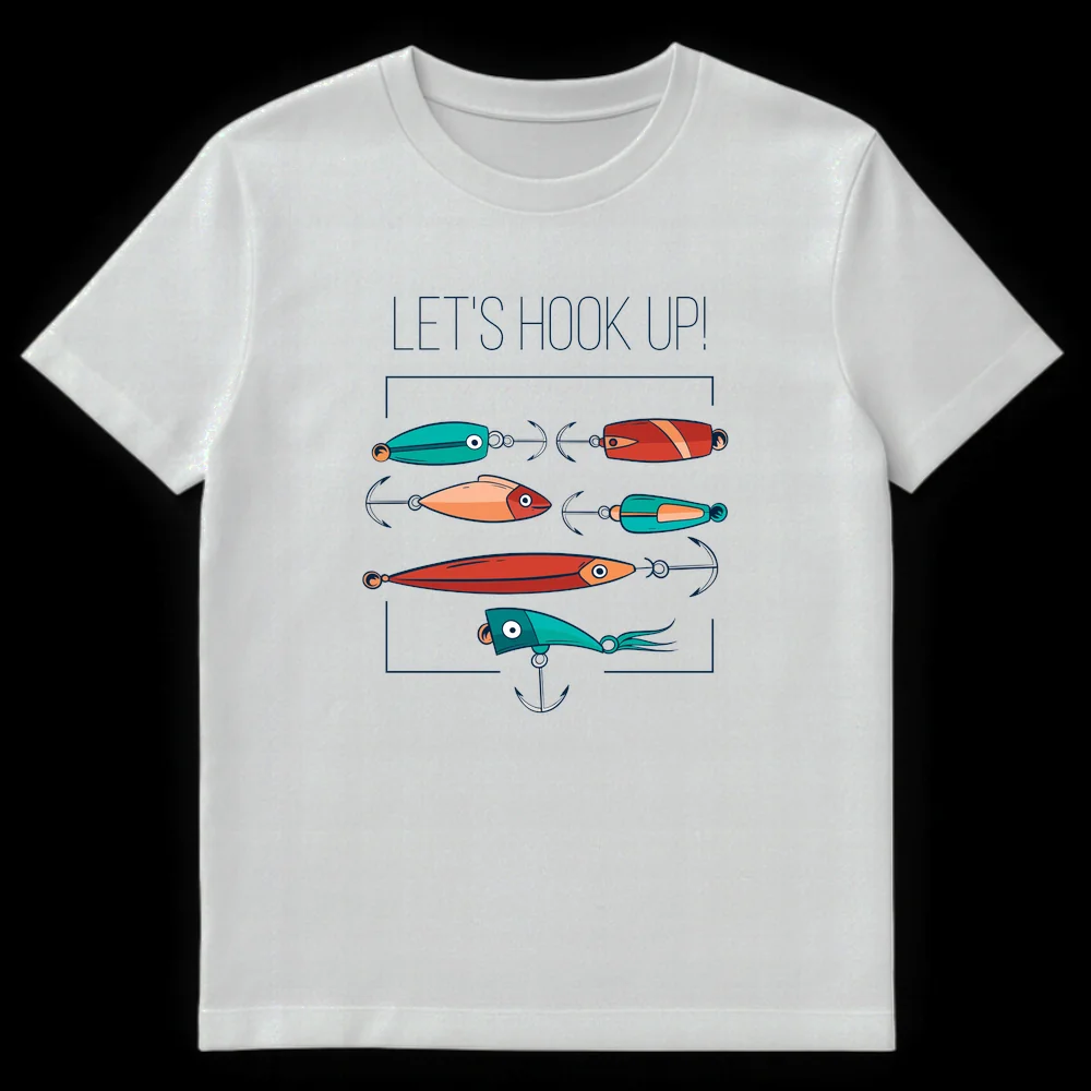 Cast a line of laughter and style with our exclusive “LET’S HOOK UP!” t-shirt. This engaging design combines a modern, clean artistic style with a universally appreciated double entendre. Five distinct, brightly colored fishing lures, complete with detailed hooks, anchor the visual, perfectly illustrating the literal fishing context. Paired with the bold, sans-serif text, the shirt delivers a playful message that’s both relevant to the outdoors and cleverly suggestive in a social sense. It’s an ideal way to express your passion for fishing while showcasing a great sense of humor. Whether you’re heading to the lake, a casual get-together, or simply enjoy a good pun, this tee is a guaranteed conversation starter. Makes an excellent gift for anglers, fishing buddies, or anyone who loves witty apparel and a bit of cheeky charm.