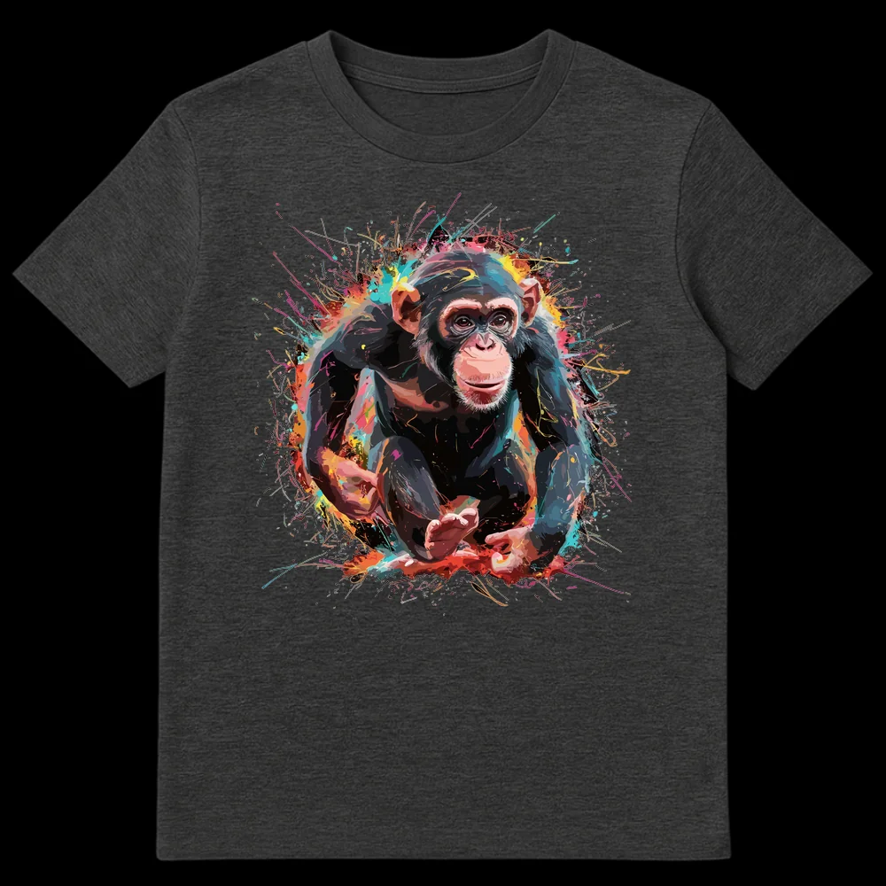 Unleash your wild side with this captivating chimpanzee t-shirt. Featuring a beautifully rendered chimp emerging from an explosion of vibrant, abstract colors, this design is a true visual statement. It’s an ideal gift for wildlife enthusiasts, art lovers, or anyone who appreciates bold, expressive apparel that stands out in a crowd.