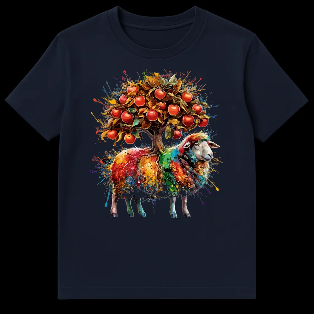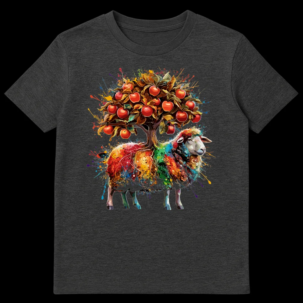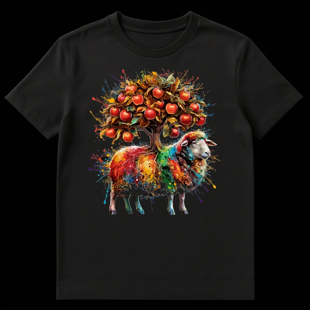 Embrace the absurd and artistic with our vibrant Apple Sheep T-shirt! This unique design features a sheep with an apple tree growing from its back, rendered in a dynamic, colorful paint splatter style. It’s a delightful visual pun that merges nature’s bounty with playful imagination. Perfect for anyone who loves animals, art, or a touch of surreal humor, making it an excellent gift for nature enthusiasts and creative spirits alike.