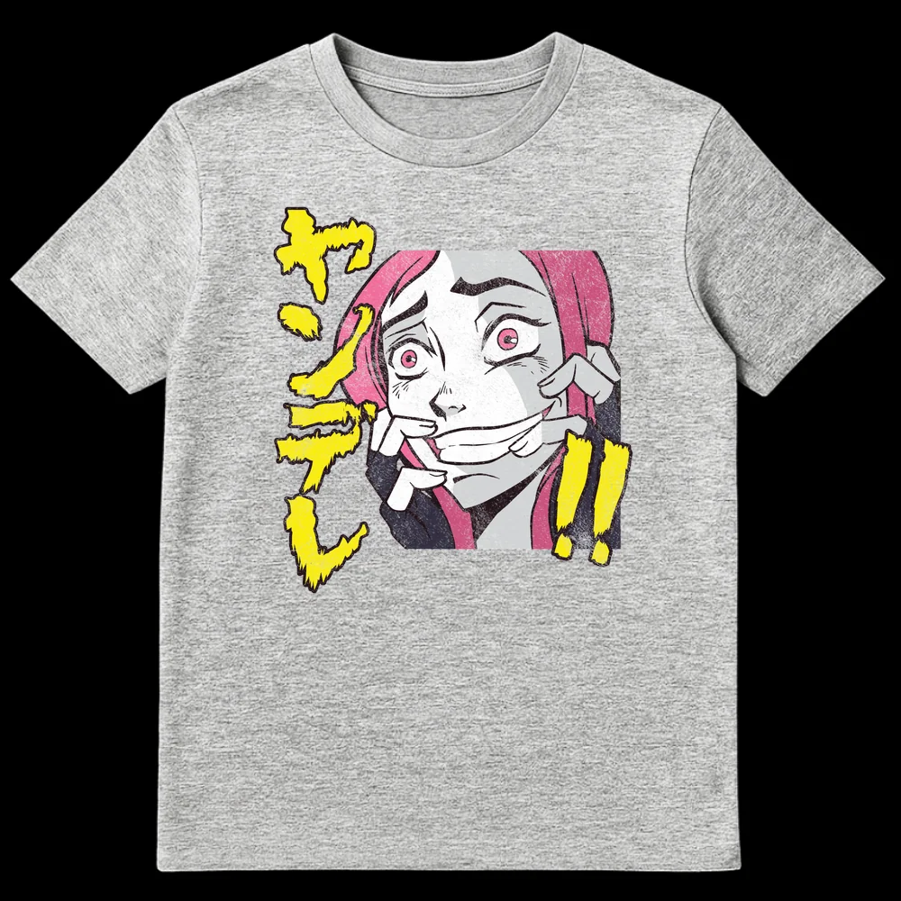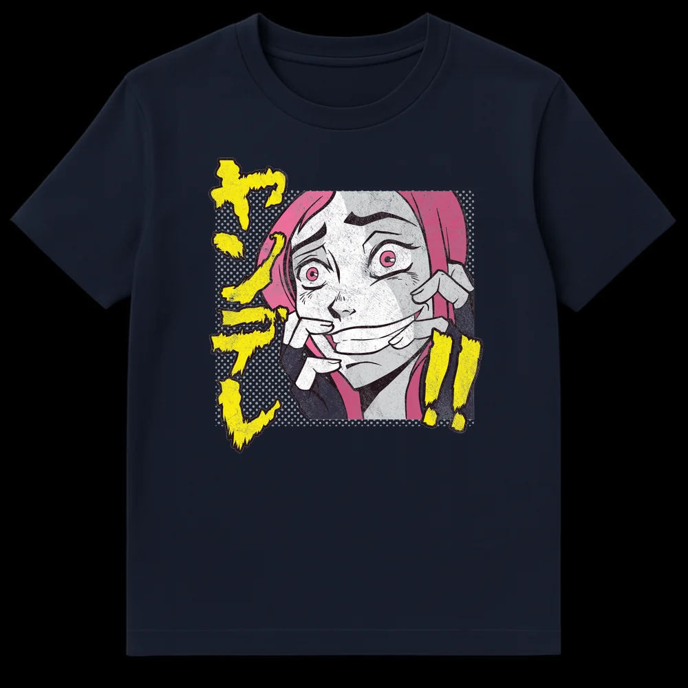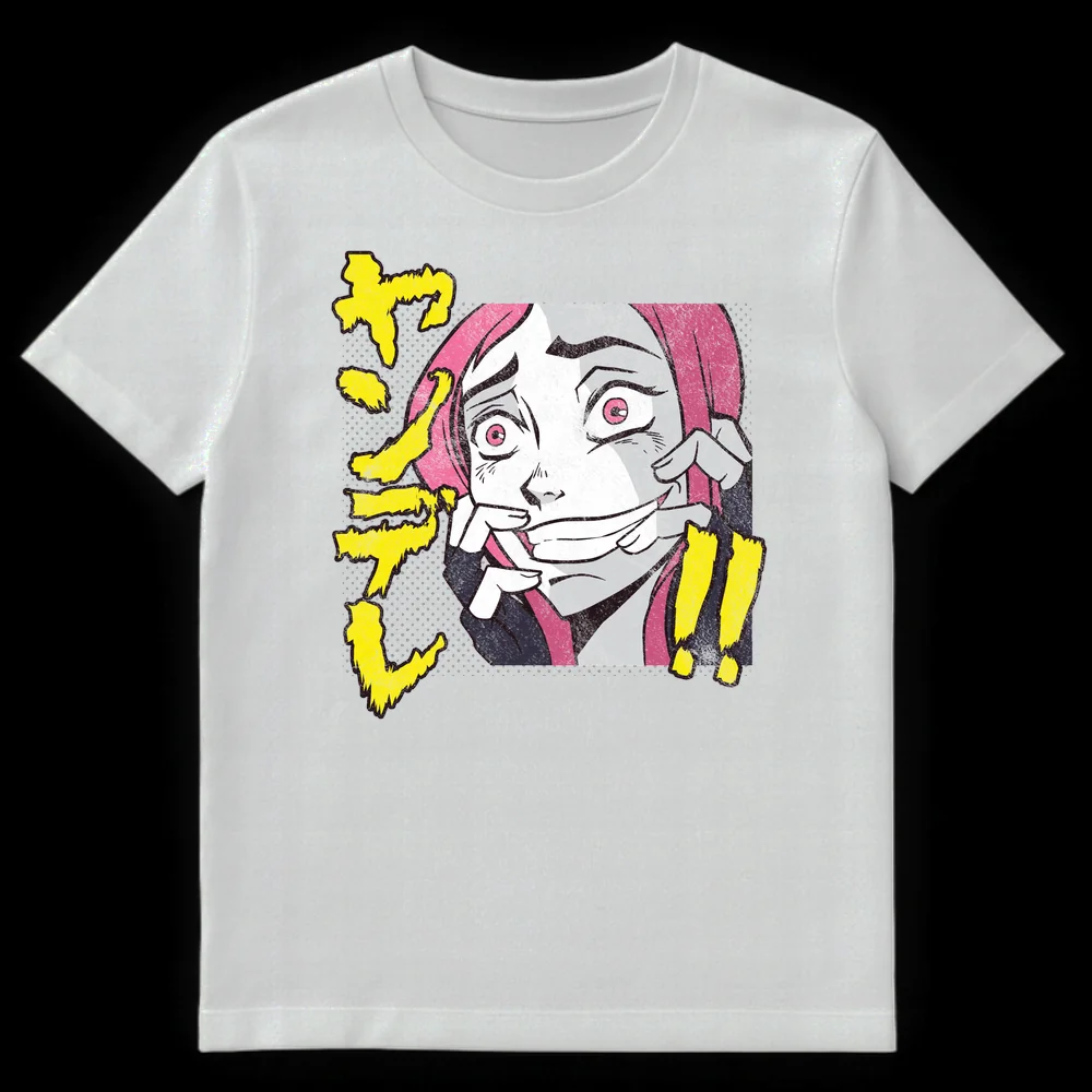 Embrace your internal struggle with this unique anime t-shirt featuring a pink-haired character’s unsettling forced smile. The Japanese text “ザワ” (Zawa) depicts a sense of unease or commotion, perfectly capturing the relatable experience of masking anxiety. It’s a darkly humorous statement piece and an ideal gift for anime lovers who appreciate psychological themes and expressive manga art.