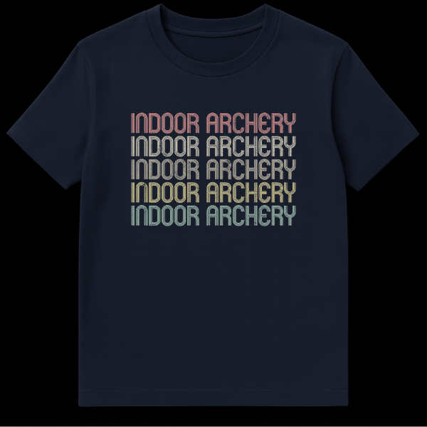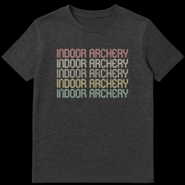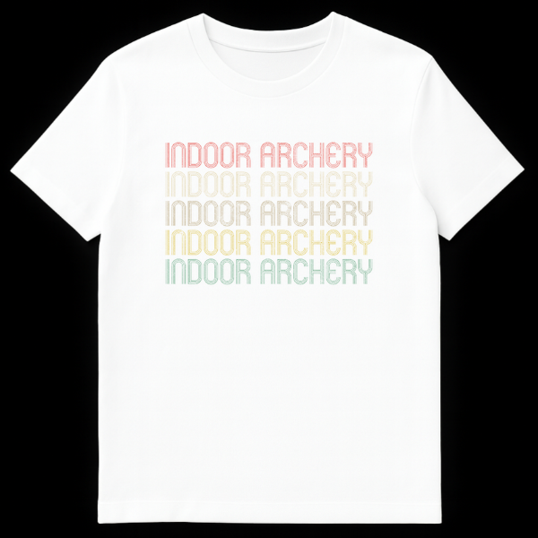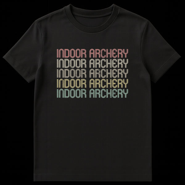 Showcase your dedication to hitting the bullseye with this unique ‘INDOOR ARCHERY’ t-shirt. The design brilliantly captures a vintage 70s/80s aesthetic with its bold, uppercase, multi-line text, repeated five times for powerful emphasis. Each line features a distressed texture and a distinct, muted retro color, creating an eye-catching gradient effect on a classic black background. This isn’t just a shirt; it’s a wearable piece of art that speaks to the pride and passion of the indoor archery community. Whether you’re a seasoned competitor, a dedicated hobbyist, or looking for the ultimate gift for an archer, this tee expresses identity with a cool, nostalgic flair. It’s a stylish nod to the sport, perfect for club meets, practice, or everyday wear.