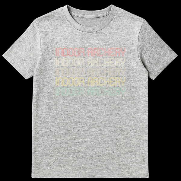 Declare your passion for shooting arrows with our ‘INDOOR ARCHERY’ tee. This design features bold, repeated text in a distinctive retro typography, reminiscent of 70s/80s athletic wear. The multi-line, distressed letters in a muted gradient color palette offer a stylish, nostalgic vibe. It’s the perfect statement piece or a thoughtful gift for any indoor archery enthusiast.