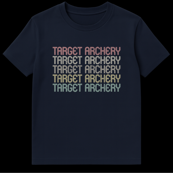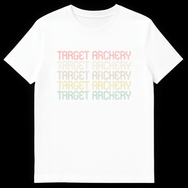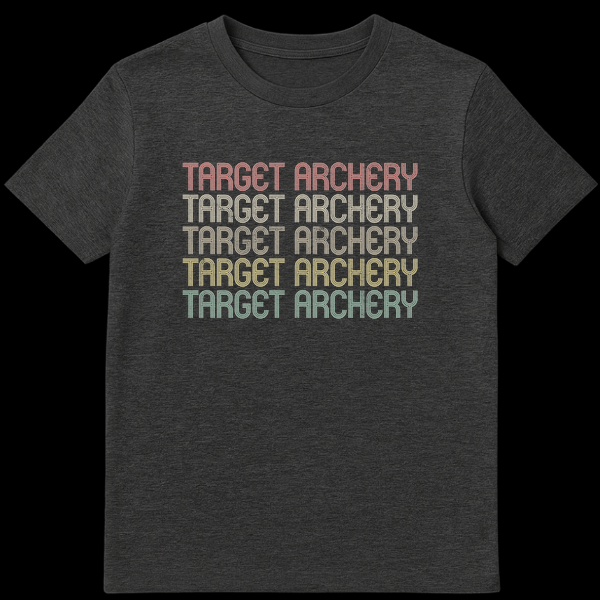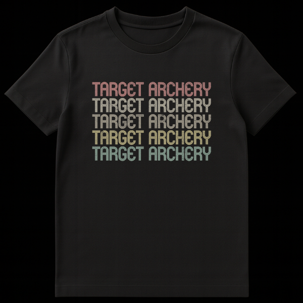 Embrace your passion for the bullseye with our unique Target Archery t-shirt, a must-have for every archery enthusiast. This design stands out with its bold, stacked ‘TARGET ARCHERY’ text, crafted in a groovy, retro striped font reminiscent of 70s and 80s athletic gear. The vintage aesthetic is amplified by a subtle distressed texture and a sophisticated muted color gradient, transitioning from faded red to seafoam green, giving it an authentic, well-loved feel. It’s more than just a shirt; it’s a stylish statement of identity for those dedicated to the bow and arrow. Perfect for practice, tournaments, or casual wear, this tee makes an excellent gift for any archer, from beginners to seasoned competitors, celebrating their skill and dedication to the sport. Wear your archery pride with a touch of timeless cool.