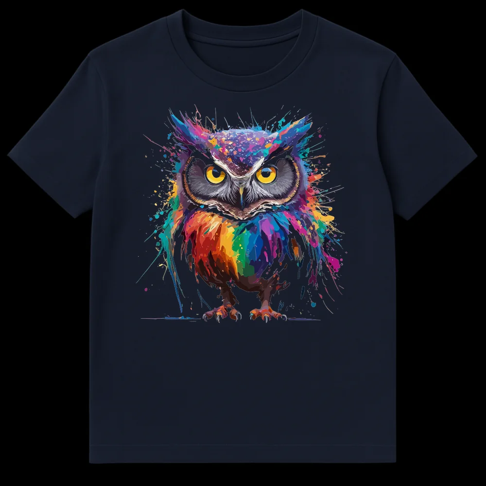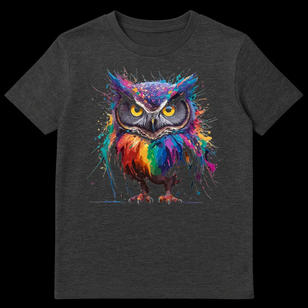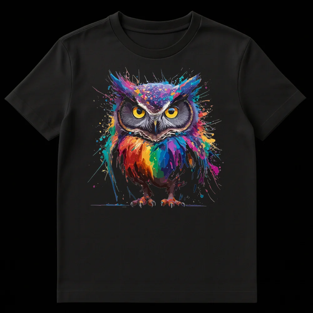 Unleash your inner wisdom with our stunning Vibrant Abstract Owl T-Shirt. This unique design features a majestic owl rendered in an energetic, multi-color paint splatter style, creating a truly eye-catching aesthetic. It’s a perfect blend of modern abstract art and the timeless symbolism of the owl, making it an ideal gift for art lovers, nature enthusiasts, or anyone who appreciates bold, unique graphic designs.