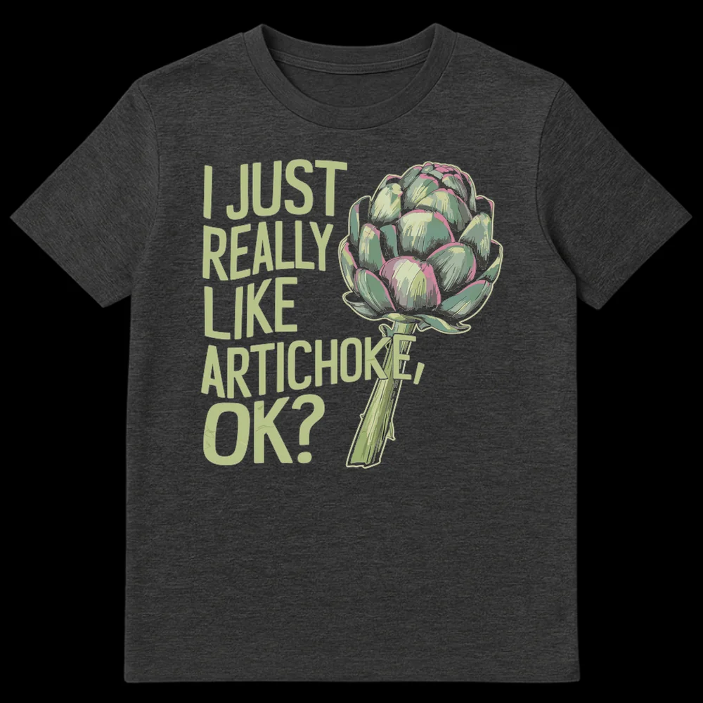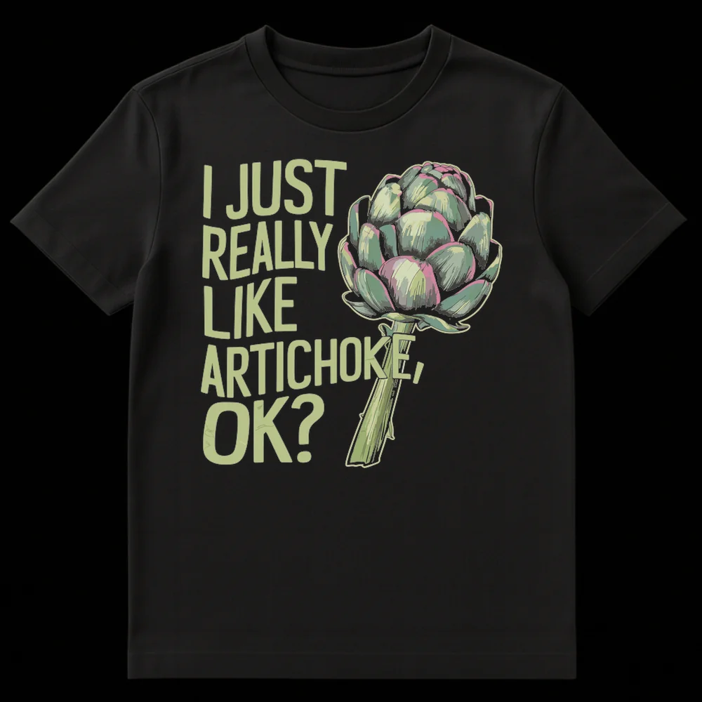 Declare your undeniable love for artichokes with this unique t-shirt. Featuring a bold “I JUST REALLY LIKE ARTICHOKE, OK?” slogan alongside a stylized artichoke illustration, this design subtly expresses a quirky food preference with humor. It’s the perfect gift for foodies, vegetarians, gardeners, or anyone who unapologetically loves their veggies.