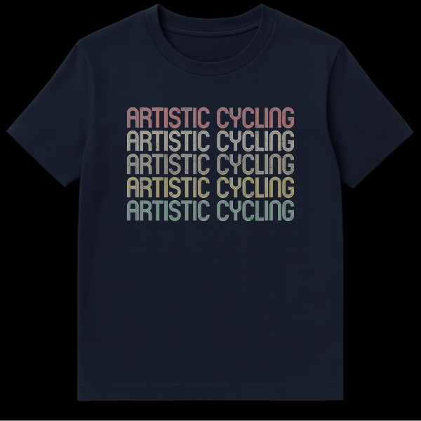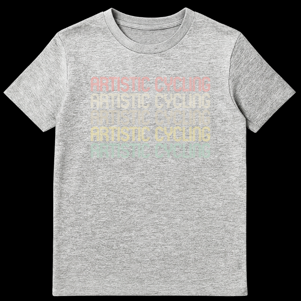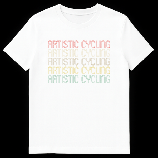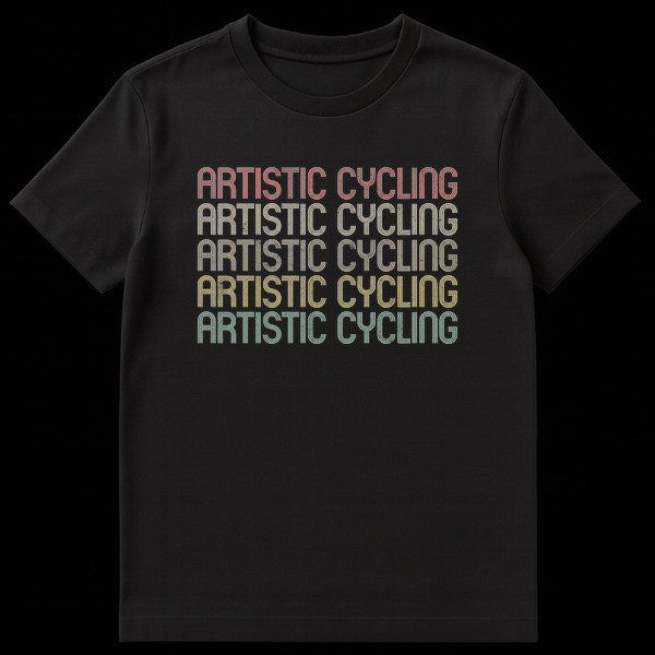 Celebrate your passion for Artistic Cycling with this eye-catching t-shirt. Featuring the words “ARTISTIC CYCLING” stacked five times in a vibrant, progressing color scheme, this design boasts a unique retro-inspired inline font with a subtle distressed texture. It’s the perfect way for any artistic cycling enthusiast or competitor to showcase their love for the sport, making it an ideal gift for birthdays, competitions, or just because.