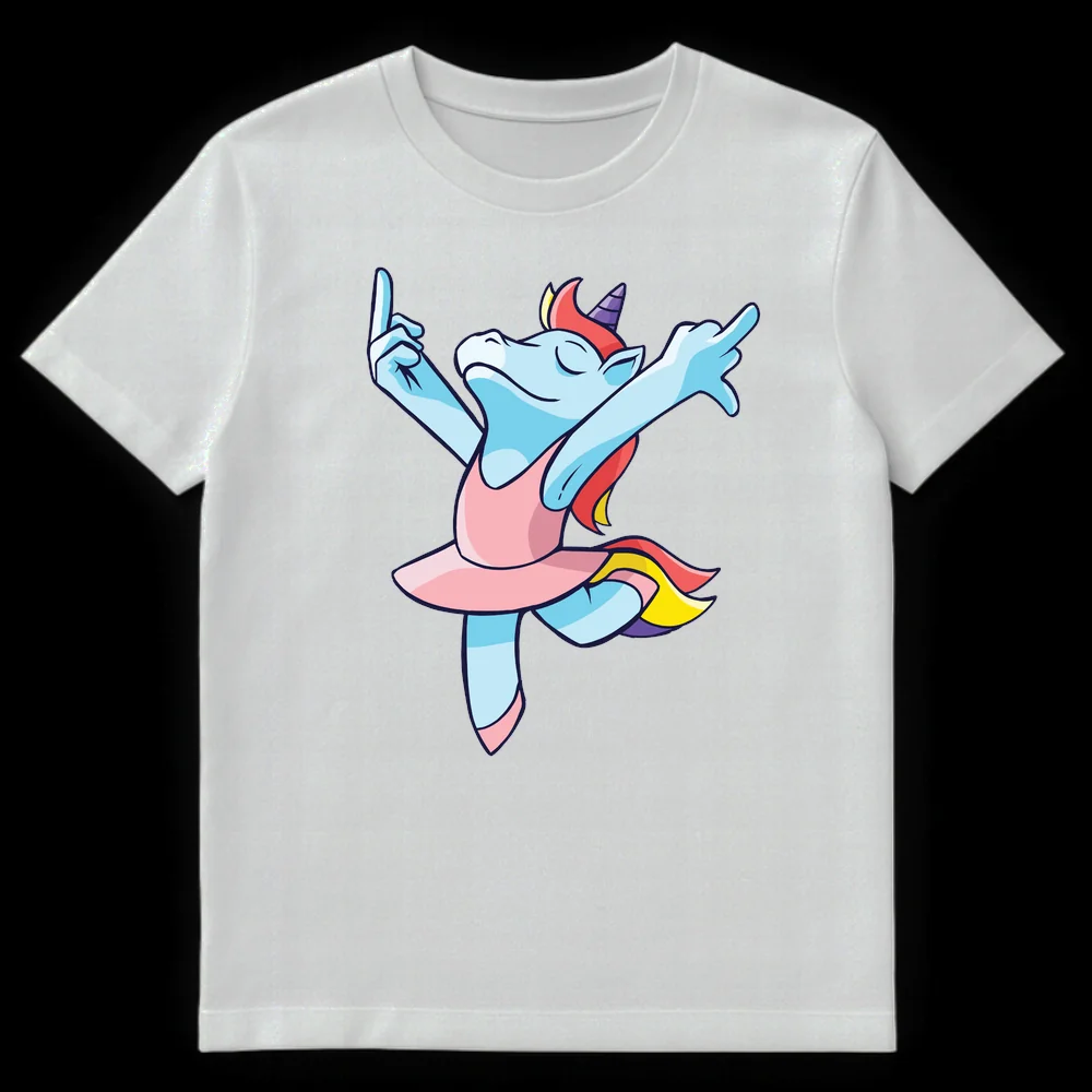 Unleash your sassy side with our unique Unicorn Ballet Middle Finger tee! This design brilliantly juxtaposes the magical innocence of a unicorn in a tutu with a defiant middle-finger gesture. Perfect for those with an edgy sense of humor, it’s a bold statement piece and an ideal gift for sarcastic friends or anyone who loves subversive fantasy fun.