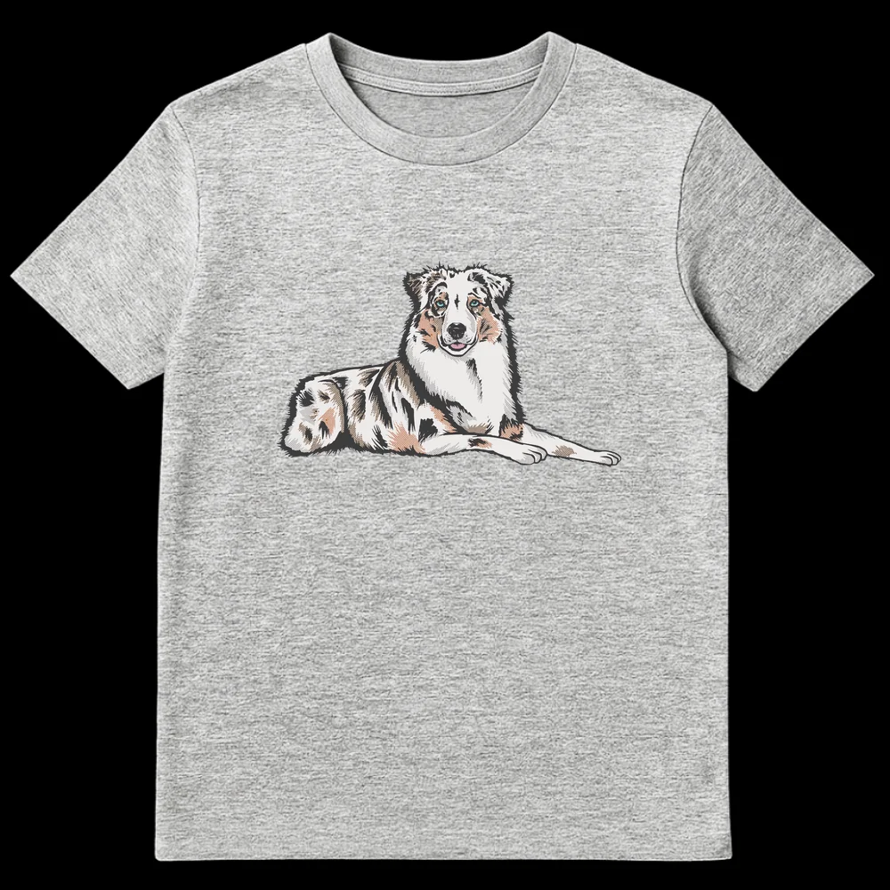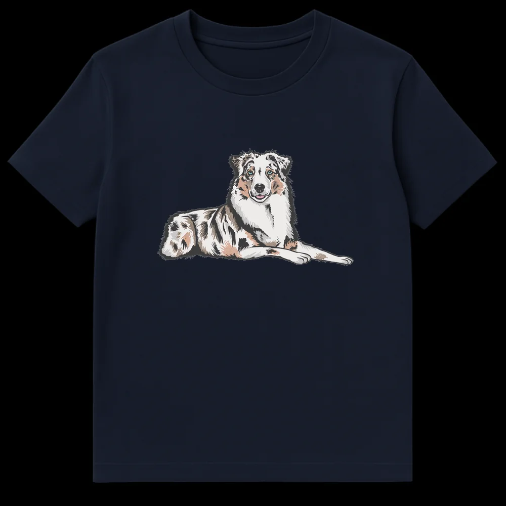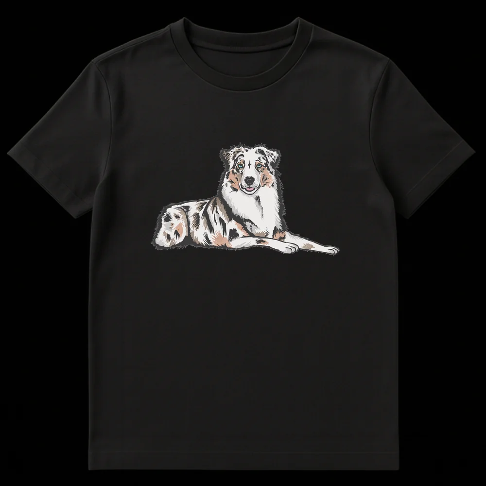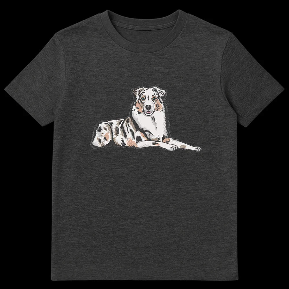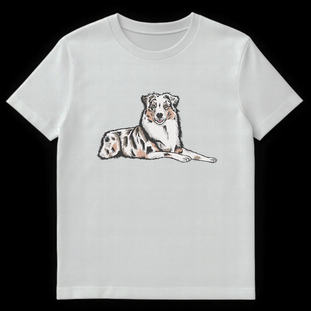 Celebrate your love for Australian Shepherds with this stunning t-shirt. Featuring a stylized, detailed illustration of a merle Australian Shepherd with captivating blue eyes, this design perfectly captures the breed’s distinct beauty. It’s an ideal gift for Australian Shepherd owners, enthusiasts, and anyone who cherishes this intelligent and loyal dog breed.