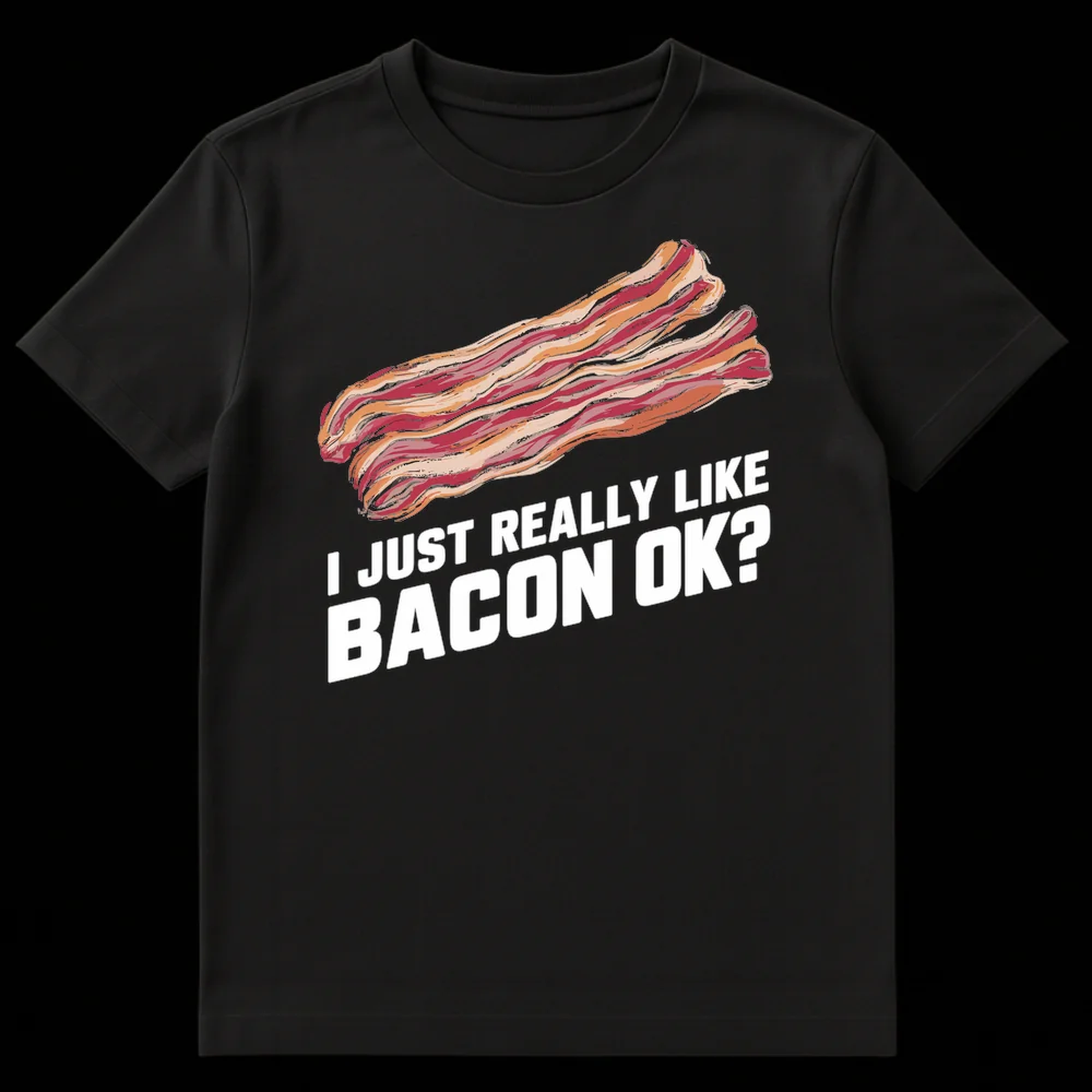 Declare your ultimate food obsession with this hilarious “I JUST REALLY LIKE BACON OK?” t-shirt. Featuring a deliciously stylized bacon graphic and bold typography, it’s a playful, unapologetic statement for anyone who can’t get enough of their favorite breakfast staple. This shirt is a perfect gift for foodies, bacon enthusiasts, or anyone with a great sense of humor about their culinary passions.