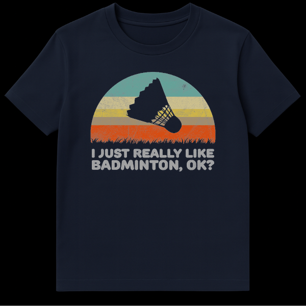Declare your unwavering passion for the shuttlecock sport with this humorous badminton t-shirt. The bold text, “I JUST REALLY LIKE BADMINTON, OK?”, perfectly captures that undeniable love for the game, making it clear where your loyalties lie. It’s a fun and relatable statement piece for anyone who can’t get enough of the court. This design makes an ideal gift for badminton players, fans, and coaches alike.