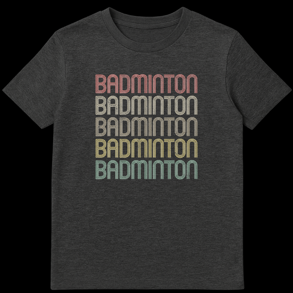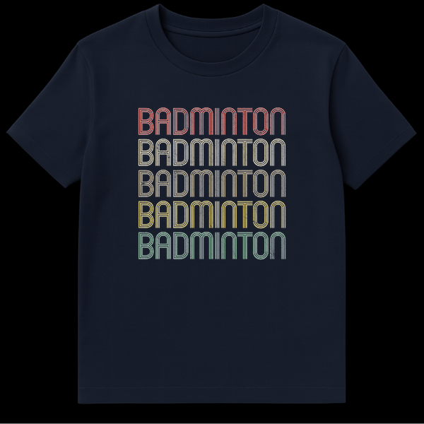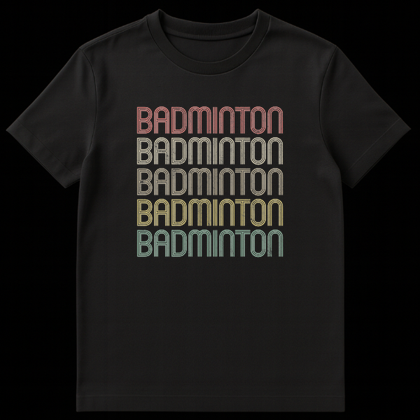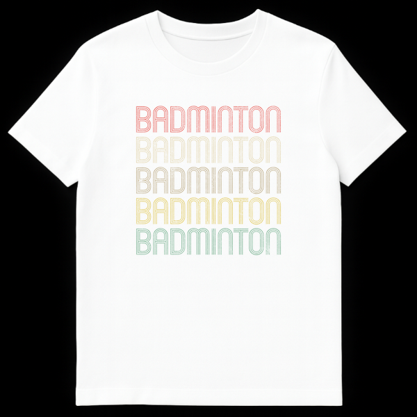 Dive into the world of shuttlecocks and smashes with our unique ‘BADMINTON’ stacked word t-shirt. This design celebrates the beloved sport with five repetitions of ‘BADMINTON’, each rendered in a different, striking color – from a faded reddish-orange to a muted teal. The retro, striped, and subtly distressed style gives it a classic, worn-in feel, perfect for those who appreciate vintage aesthetics and bold statements. It’s more than just a shirt; it’s a declaration of your devotion to badminton, ideal for wearing on the court, to practice, or simply as a casual expression of your hobby. A fantastic gift for any badminton player, fan, or coach who loves unique sports apparel with a timeless look.