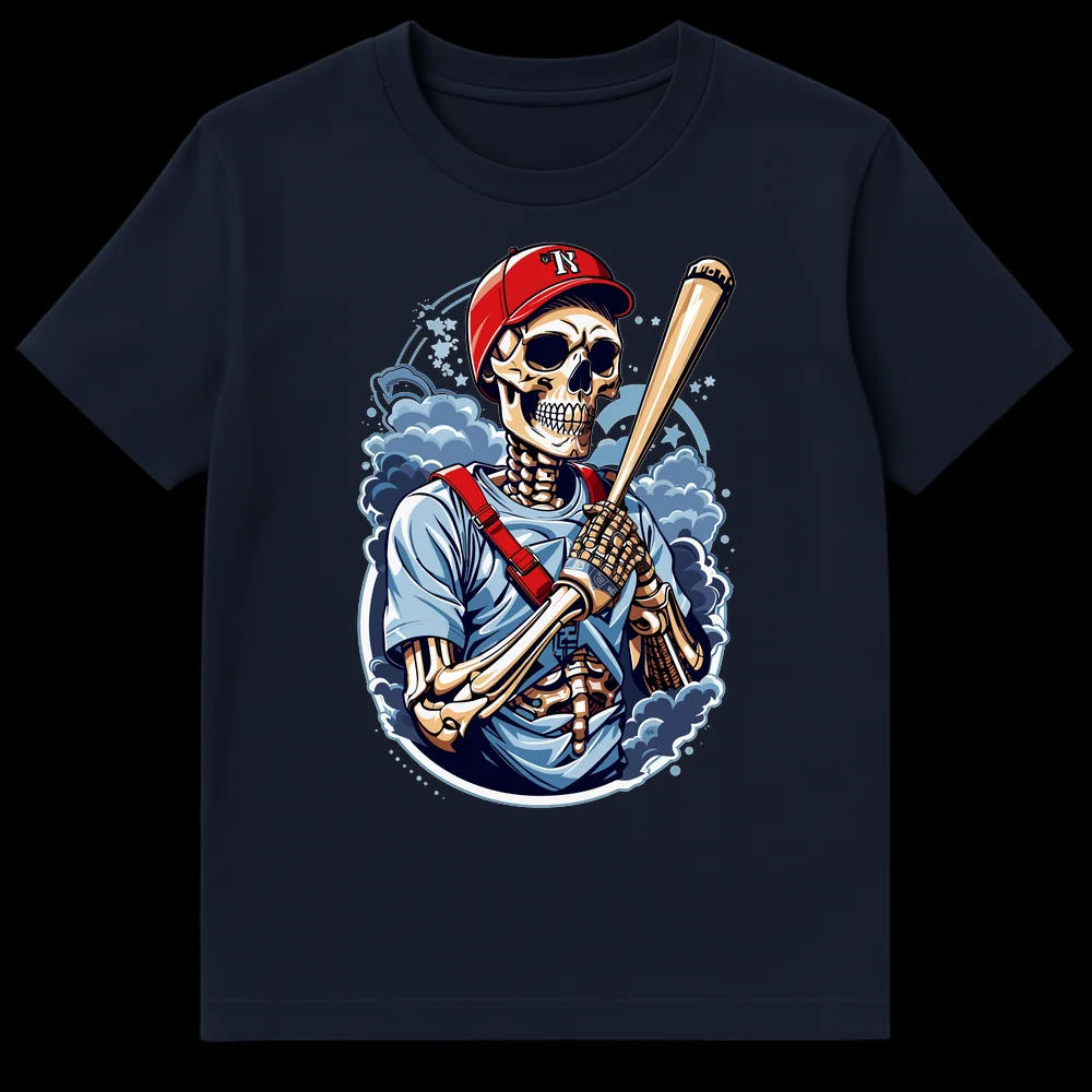 Swing into action with our striking Undead Batter Skeleton T-shirt, a must-have for every dedicated baseball enthusiast. This isn’t just a shirt; it’s a statement of eternal fandom, featuring a graphically detailed skeleton ready to crush one out of the park. Adorned in a vibrant red baseball cap displaying a prominent ‘R’ – perhaps for your favorite team, or just for ‘Radical’ – this design blends athletic intensity with a cool, alternative aesthetic. The dynamic art style, complete with swirling energy and a formidable bat, ensures you’ll stand out whether you’re at the ballpark or just out and about. It’s the ultimate gift for baseball lovers, those with a penchant for dark humor, or anyone seeking unique sports apparel that merges the thrill of the game with a distinctive, edgy flair. Show off your ‘killer’ passion for baseball with this unforgettable design.