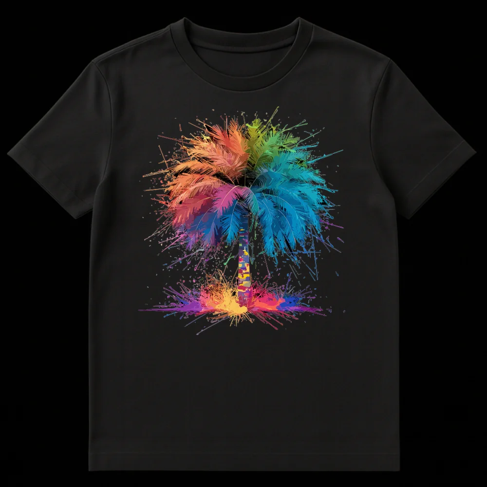 Embrace the vibrant energy of summer with our Abstract Rainbow Palm Tree T-Shirt. This design features an explosion of kaleidoscopic colors in a digital paint splatter style, creating a stunning visual ode to tropical paradise. It’s a mood-boosting statement piece, perfect for anyone who loves beaches, art, and positive vibes. A fantastic gift for tropical enthusiasts and festival-goers.