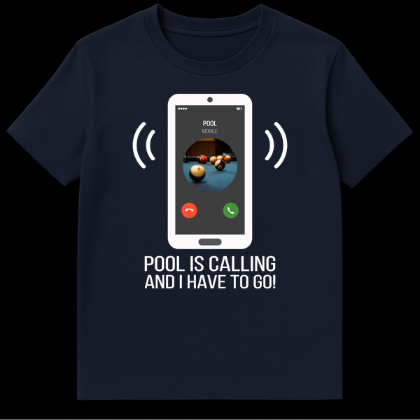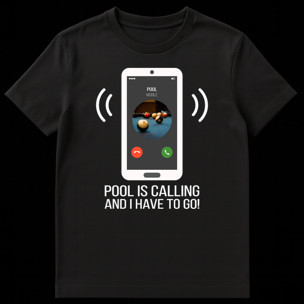 Answer the call of the game with our humorous “Pool Is Calling And I Have To Go!” t-shirt. This design features a minimalist smartphone displaying an urgent call from ‘POOL MOBILE,’ complete with a vibrant pool table image and iconic call buttons. It’s the perfect funny declaration for anyone who prioritizes their time on the felt, making it an excellent gift for pool sharks and billiard lovers.