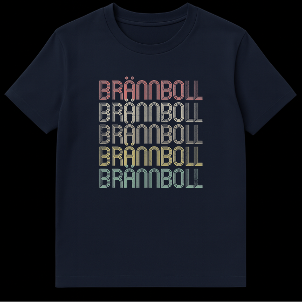 Step up to the plate in style with our exclusive Brännboll t-shirt, celebrating the unique Scandinavian outdoor game. The centerpiece of this design is the iconic “BRĂ„NNBOLL” text, rendered in a captivating retro-layered font that harks back to the groovy 70s and Art Deco eras. Each bold, capital letter boasts a stacked line effect and a subtle distressed texture, giving it an authentic vintage feel. This design isn’t just a nod to the game; it’s a statement of classic sportsmanship and timeless style. Perfect for Brännboll players, rounders enthusiasts, or anyone who appreciates a cool, retro aesthetic in their casual wear. It makes a fantastic gift for friends and family passionate about outdoor games, Nordic culture, or unique vintage-inspired apparel.