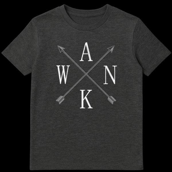Embrace irreverent humor with our ‘WANK’ compass design, featuring distressed typography and rustic arrows. This visually clever shirt spells out a provocative British slang term, creating a subversive, hidden joke that’s sure to amuse. Perfect for those with an edgy sense of humor or anyone looking for a unique novelty gift that sparks conversation.