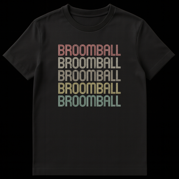 Celebrate your love for the ice with this striking Broomball t-shirt, featuring the sport’s name repeated five times in a cool, stacked gradient. Each word sports a multi-line outlined style, creating a dynamic visual. It’s the perfect gift for any dedicated broomball player or enthusiastic fan.
