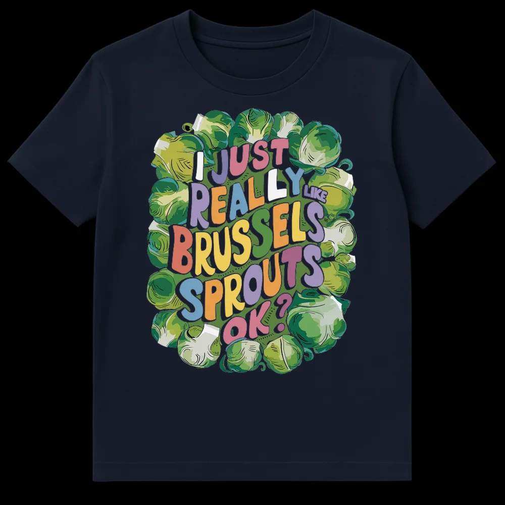 Declare your culinary truth with our “I JUST REALLY LIKE BRUSSELS SPROUTS OK?” t-shirt, a must-have for anyone who genuinely adores this often-misunderstood vegetable. This design perfectly captures the playful defiance of loving Brussels sprouts, transforming a polarizing food into a badge of honor. The vibrant, retro cartoon aesthetic, complete with chunky, hand-drawn lettering and a wreath of stylized sprouts, makes a bold visual statement. It’s more than just a shirt; it’s a conversation starter, a nod to individuality, and a humorous jab at common food stereotypes. Ideal for the foodie, the proud vegetable enthusiast, or anyone with a delightfully quirky sense of humor, this tee makes an unforgettable gift for birthdays, holidays, or just because they’re awesome. Celebrate your unique tastes and wear your Brussels sprouts love proudly!