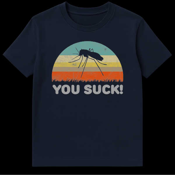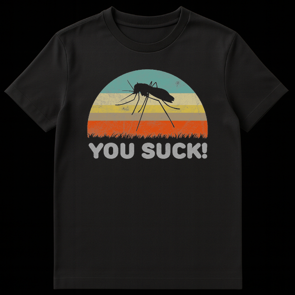 Declare your war on summer pests with this hilarious ‘YOU SUCK!’ t-shirt featuring a mosquito silhouette against a vibrant retro sunset. This design perfectly captures the universal frustration of mosquito bites with a bold, humorous statement. It’s an ideal gift for anyone who spends time outdoors, hates bugs, or appreciates a good laugh about common annoyances.