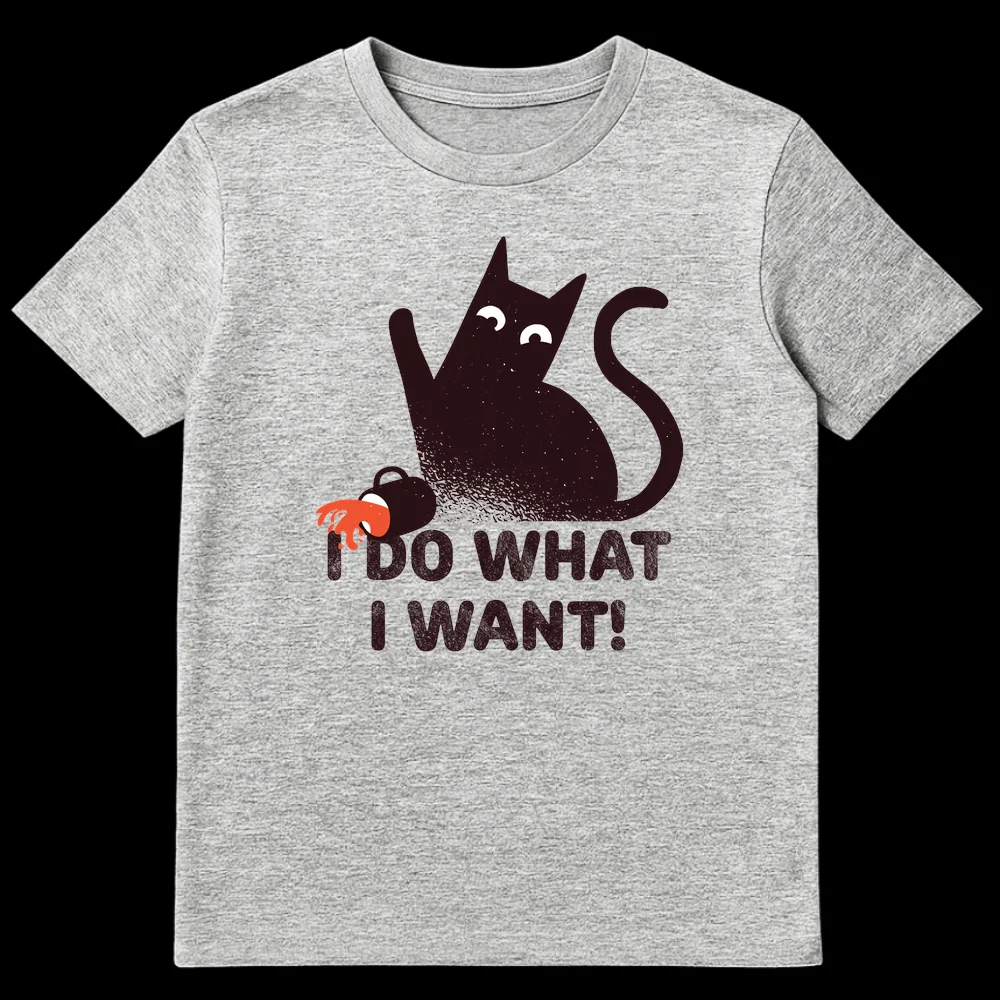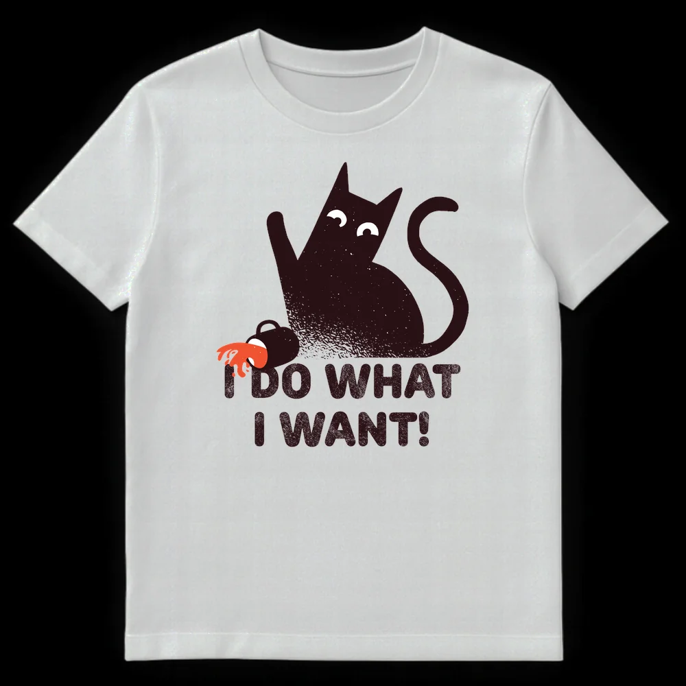 Embrace your inner feline rebel with this hilarious “I DO WHAT I WANT!” t-shirt. Featuring a minimalist black cat expertly knocking over a mug, this design perfectly captures the mischievous spirit and independent attitude every cat owner knows and loves. It’s a purr-fect gift for cat lovers, cat parents, or anyone who appreciates dry humor and a touch of defiance.