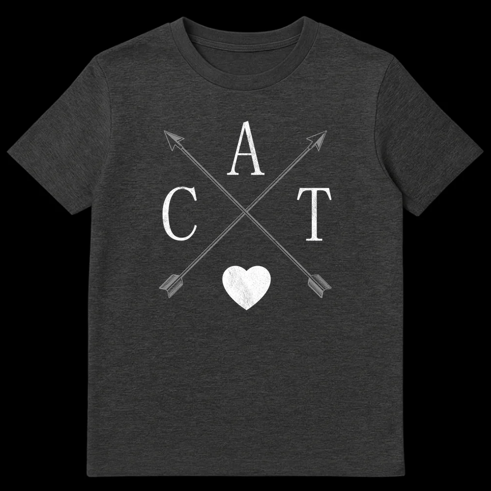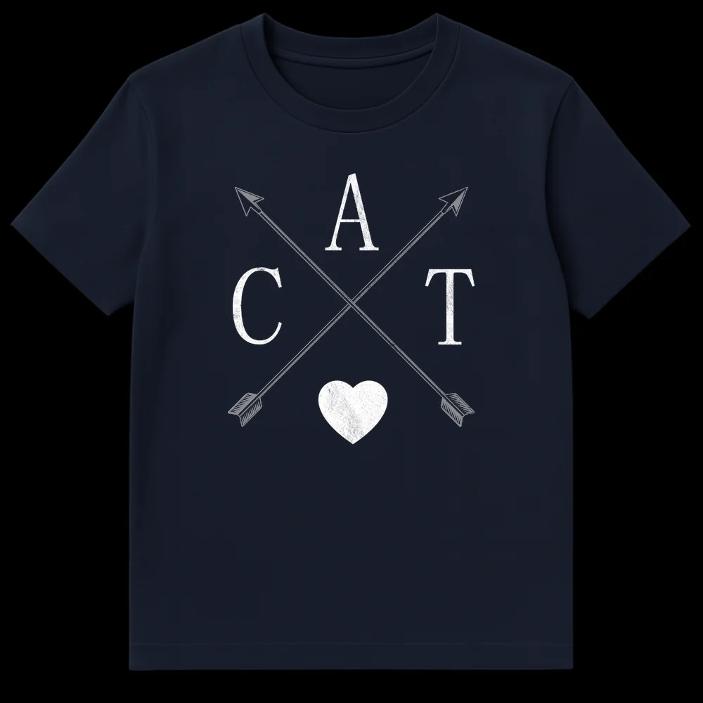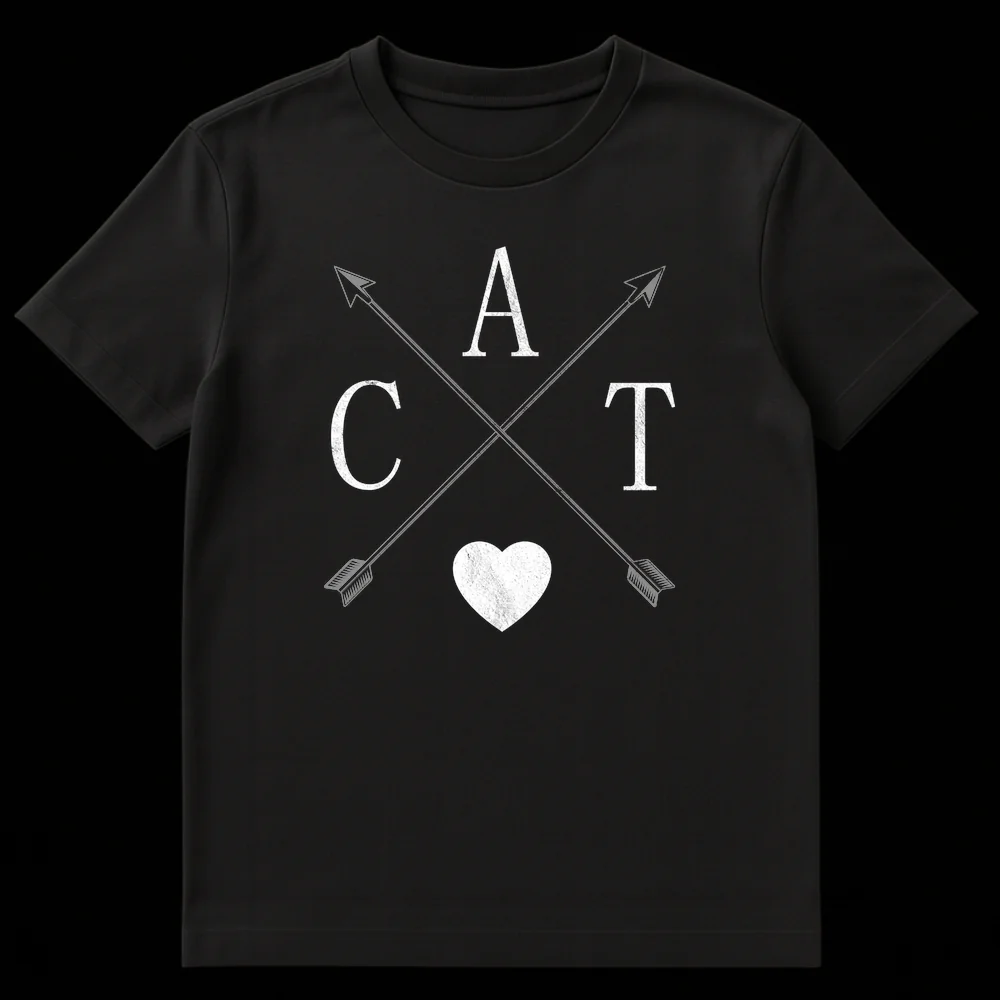 Wear your heart on your sleeve, or rather, your love for cats on your chest with our unique ‘CAT Love Heart’ t-shirt. This design brilliantly combines the letters C, A, T with a universal heart symbol and stylish crossed arrows, all rendered in a distinctive rustic-distressed aesthetic. It’s more than just a shirt; it’s a declaration of unwavering affection for your feline friends, presented in a cool, minimalist style. The aged, worn-in look ensures it avoids being overly cutesy, appealing to cat enthusiasts who appreciate a modern vintage vibe. Perfect for everyday wear, this tee allows you to showcase your cat devotion with pride and subtle flair. An ideal gift for cat owners, rescuers, or anyone whose heart belongs to their beloved kitties.
