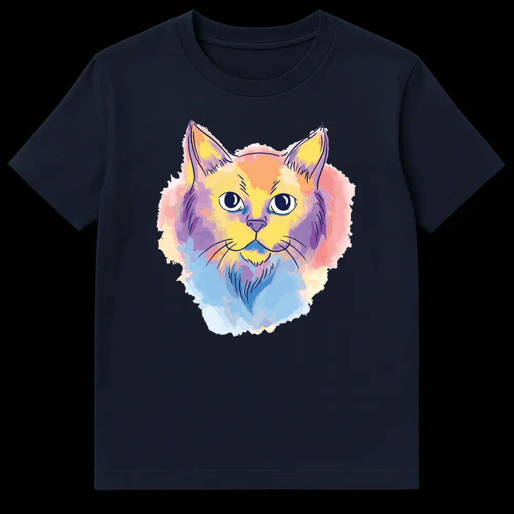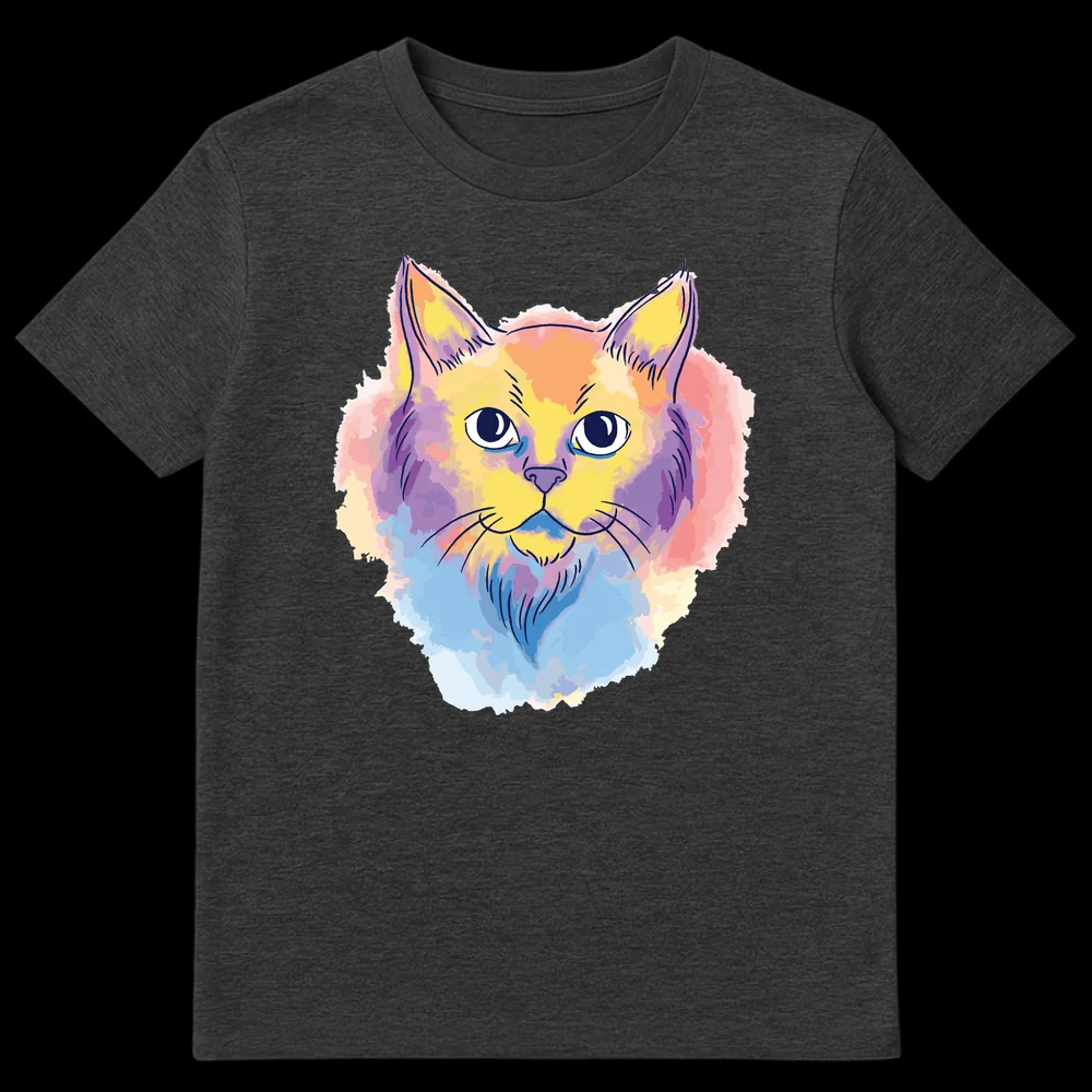 Celebrate your love for cats and art with our stunning Watercolor Cat Face T-Shirt. This design masterfully fuses a vibrant watercolor splash base with elegant, minimalist line art, creating an expressive and captivating feline portrait. The rich palette of yellows, oranges, purples, and blues blends seamlessly, giving the cat’s face an ethereal, fluid quality that’s both modern and timeless. Unlike typical graphic tees, this shirt offers a sophisticated aesthetic, making it more than just apparel—it’s wearable art. It’s perfect for anyone who appreciates artistic styles, specifically watercolor and line art, and of course, those who hold a special place in their heart for their feline companions. This t-shirt makes an exceptional gift for cat owners, pet lovers, art enthusiasts, or anyone seeking a unique, visually pleasing addition to their casual wardrobe that expresses joy, warmth, and individuality.