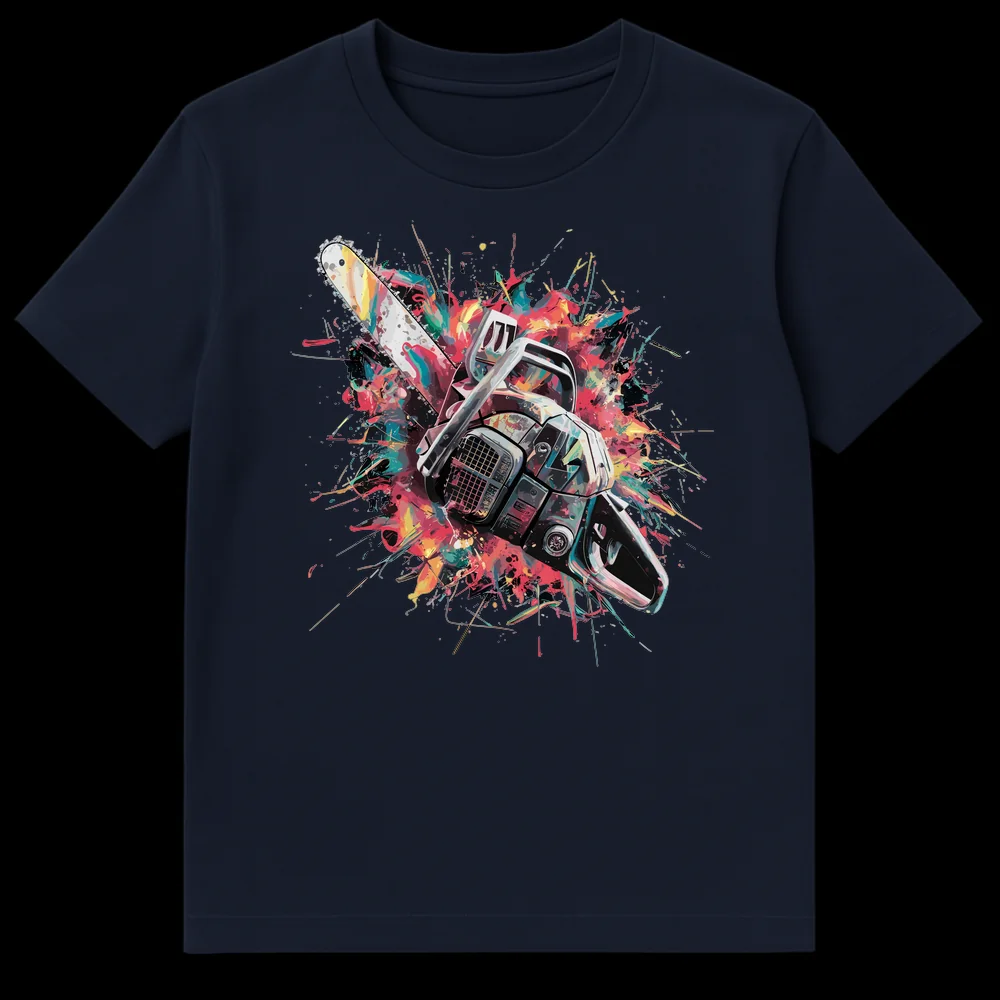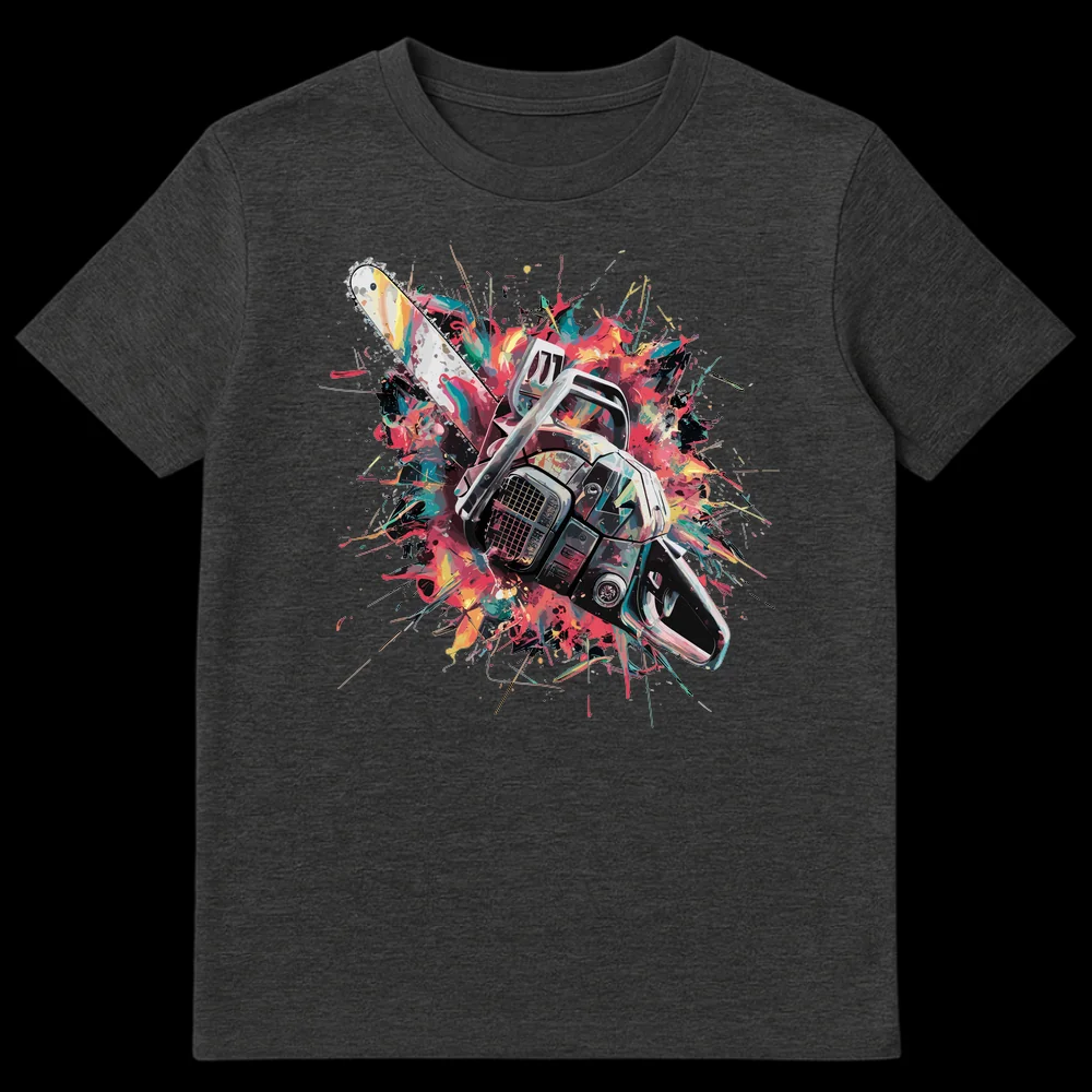 Make a bold statement with our Chainsaw Splatter Art T-Shirt, a truly unique piece that blends raw power with vibrant artistic energy. This eye-catching design features a realistically rendered chainsaw engulfed in a dynamic explosion of colorful paint splatters and drips, creating a visually striking contrast against a dark background. It’s an homage to themes of strength, creation, and controlled chaos, transforming a powerful tool into a piece of expressive art. Perfect for those who love bold, modern graphic tees, industrial aesthetics, or have a passion for construction, forestry, or landscaping. This shirt isn’t just clothing; it’s a celebration of unleashed force and creativity, designed to evoke excitement and dynamism. It makes an unforgettable gift for the adventurous spirit, the artistic mechanic, or anyone who dares to wear their power on their sleeve.