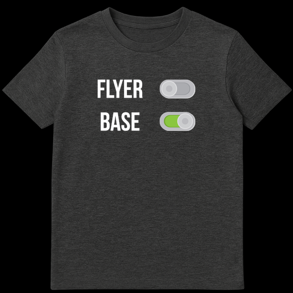 Show off your position on the cheer squad with a design that speaks louder than words. This witty t-shirt features a modern, digital-style interface with two toggle switches. The top switch for ‘Flyer’ is grayed out and set to off, while the bottom switch for ‘Base’ is lit up in bright green, signaling that you are ready for action. It’s a humorous and stylish way to declare that you aren’t the one getting thrown in the air—you’re the powerhouse making sure they stay up there. Whether you are training for competition, heading to cheer camp, or just want to represent your team spirit at school, this tee is designed for the unsung heroes of every pyramid. It makes a fantastic gift for bases, spotters, and cheer teammates who pride themselves on strength and stability.