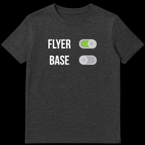 Switch up your cheer gear with this clever design featuring digital toggles set to Flyer Mode: ON. Perfect for the squad member who loves to fly high and leave the lifting to others. This graphic tee humorously declares your role on the mat with a distinct tech-inspired style.
