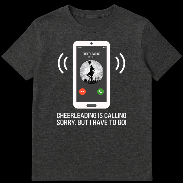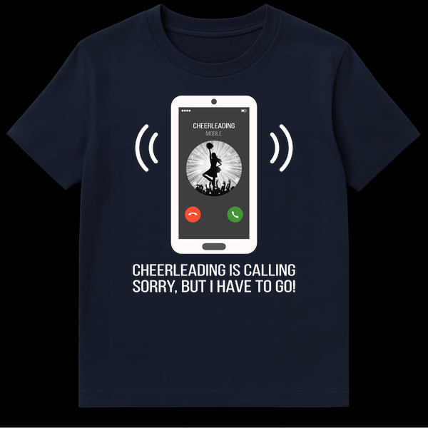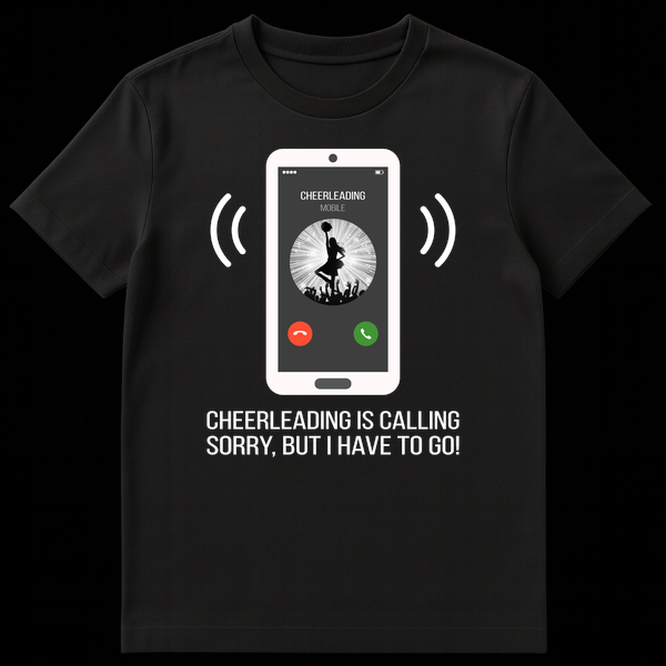 Embrace the dedicated spirit of cheerleading with this funny and relatable t-shirt design. Our exclusive tee showcases a phone screen indicating an incoming call from ‘CHEERLEADING MOBILE’, followed by the all-too-familiar declaration, ‘CHEERLEADING IS CALLING, SORRY, BUT I HAVE TO GO!’. This design perfectly encapsulates the passion and commitment cheerleaders have for their sport, making light of how their squad often becomes their top priority. It’s a fantastic conversation starter and a humorous nod to the cheerleading lifestyle. This shirt is an excellent gift for cheerleaders, cheer moms, cheer dads, coaches, or anyone involved in the world of competitive cheerleading who appreciates a good laugh about their dedication. Show your cheer pride and sense of humor in style!