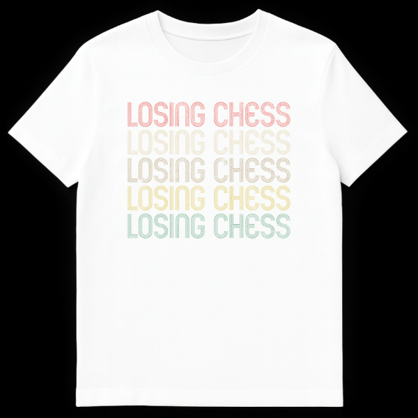 Embrace your love for the board game with the “LOSING CHESS” t-shirt, featuring a cool retro 70s/80s vintage stacked font. This design humorously acknowledges the relatable experience of losing chess matches, making it a perfect self-deprecating statement. It’s an ideal gift for any chess enthusiast who appreciates a good laugh and doesn’t take the game too seriously.