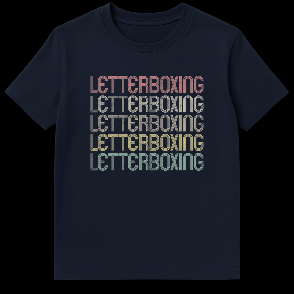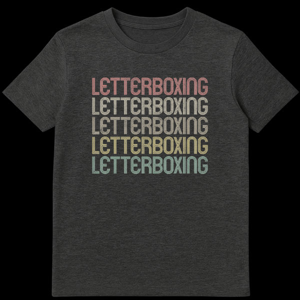 Unite your passion for cinema and sharp wit with our “LETTERBOXING” t-shirt. This design isn’t just text; it’s a visual meta-joke, where the five stacked lines of “LETTERBOXING” cleverly replicate the very aspect ratio bars it refers to. Featuring a retro typography style with a distressed, vintage feel and muted earthy tones, this shirt captures a nostalgic aesthetic for older media formats. It’s a sophisticated nod to film theory and editing, making it an ideal conversation starter among fellow cinephiles, filmmakers, or anyone involved in media production. Surprise the film buff or video editor in your life with this distinctive piece that celebrates their niche knowledge and discerning taste in a stylish, understated way. More than just apparel, it’s an inside joke for those who truly understand the art of the moving picture.