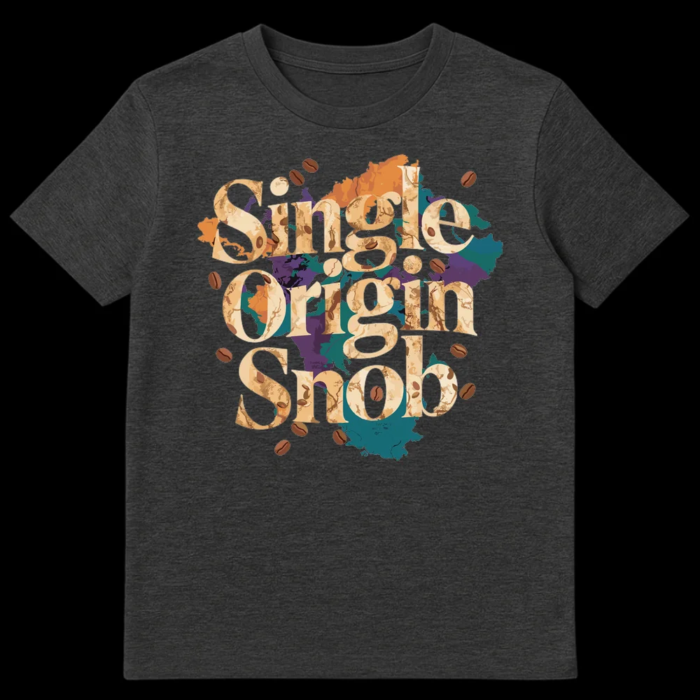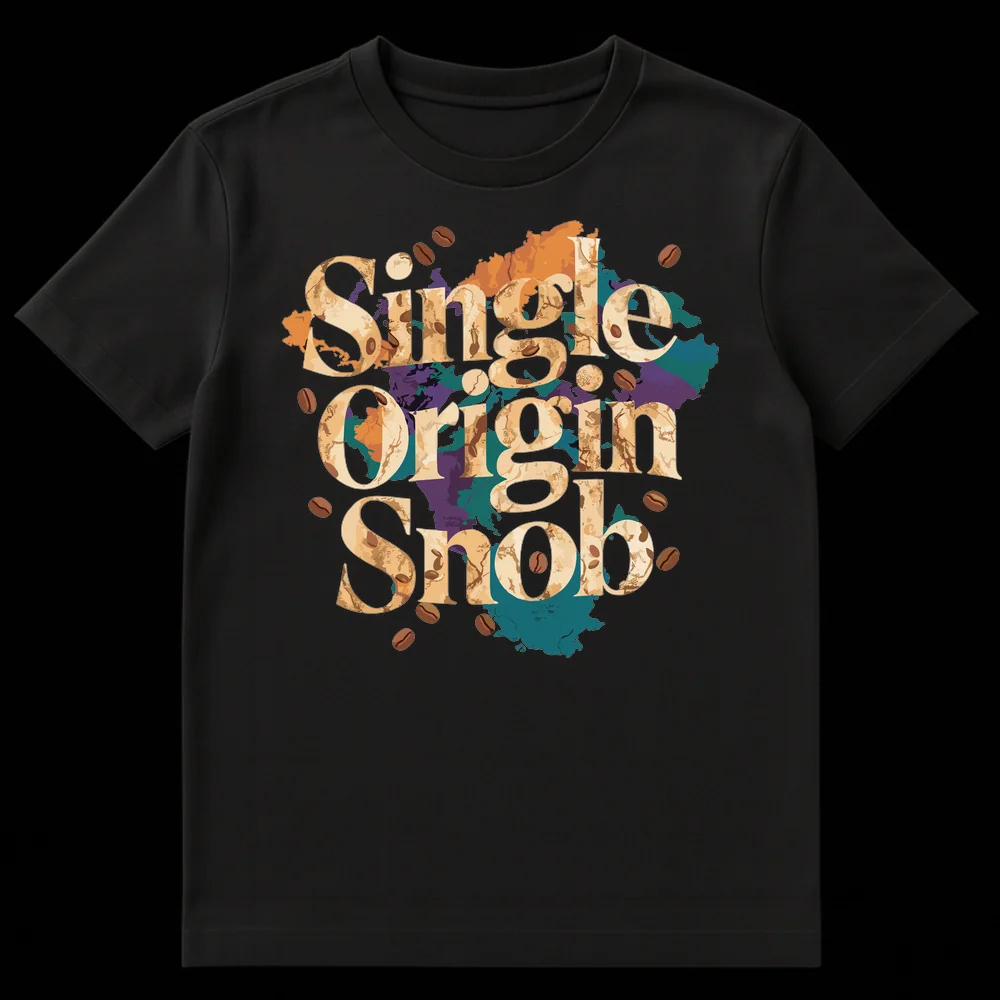 Show off your sophisticated coffee palate with our exclusive “Single Origin Snob” t-shirt. This unique design perfectly captures the essence of specialty coffee culture with its prominent, textured typography, detailed with an abstract geographical map overlay and realistic coffee beans. The phrase “Single Origin Snob” is a humorous, self-aware declaration for those who deeply appreciate the nuanced flavors and traceability of single-origin beans, distinguishing themselves from casual coffee drinkers. It’s an ideal conversation starter for coffee shops, festivals, or everyday wear. Crafted for comfort and style, this shirt makes a fantastic gift for baristas, coffee enthusiasts, or anyone who identifies with the ‘coffee snob’ lifestyle and enjoys a good laugh. Join the ranks of discerning coffee lovers with this witty and visually rich apparel.