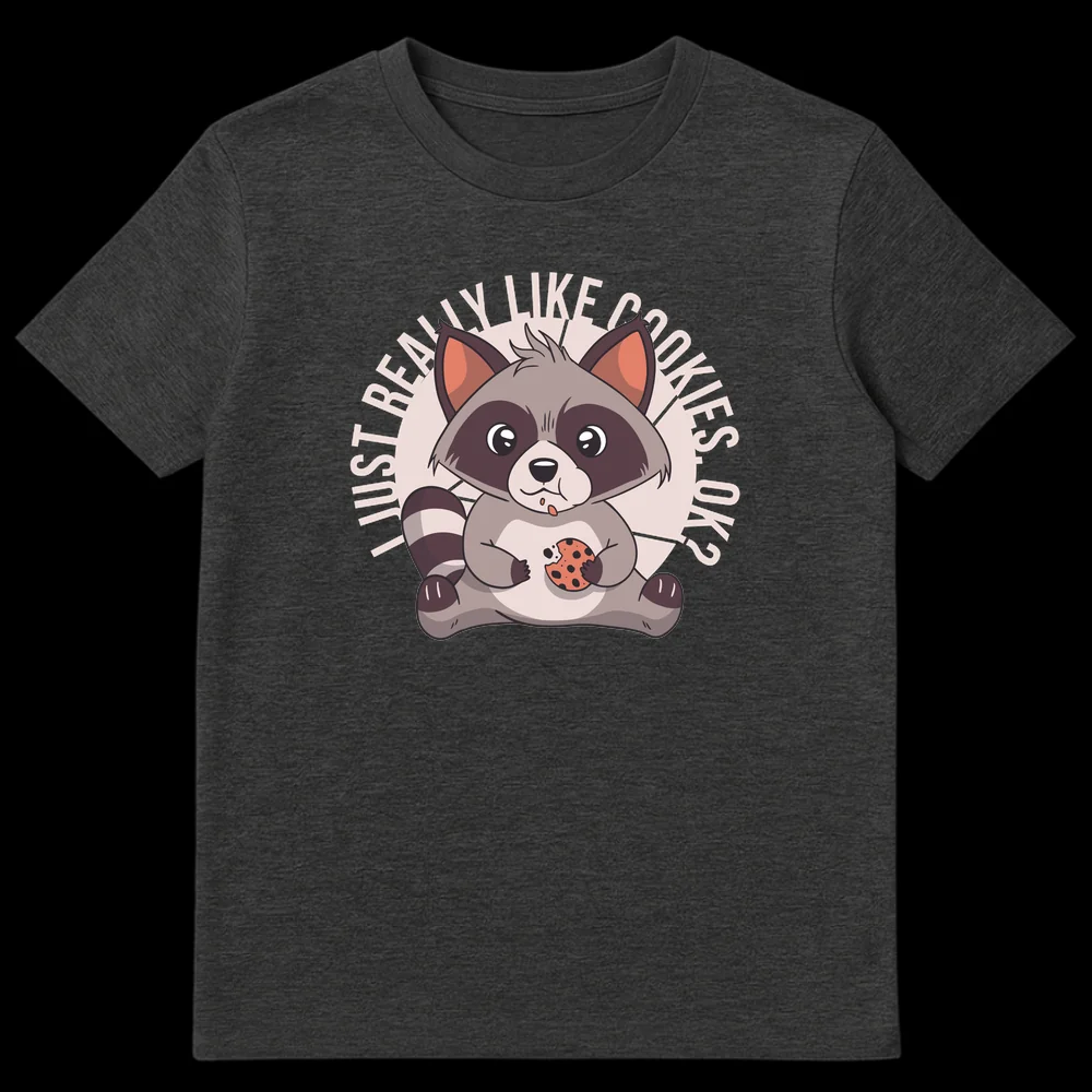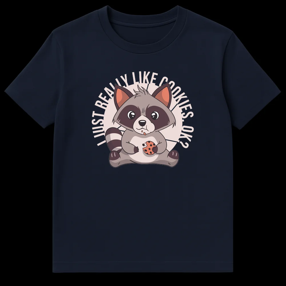 Embrace your inner cookie monster with our charming Raccoon Lover T-Shirt, a perfect blend of cute animal art and relatable foodie humor. This design showcases an irresistibly cute cartoon raccoon, complete with wide, expressive eyes and a mischievous crumb near its mouth, holding its prized chocolate chip cookie. The accompanying text, “I JUST REALLY LIKE COOKIES, OK?”, is a self-aware, endearing justification for indulging in life’s sweet pleasures, resonating with anyone who’s ever had an intense craving. It playfully riffs on raccoons’ reputation as scavengers, turning it into a wholesome, charming declaration of affection for cookies. Crafted for comfort and style, this shirt is more than just apparel; it’s a conversation starter and a smile inducer. It makes an exceptional gift for animal lovers (especially ‘trash panda’ fans), cookie enthusiasts, and anyone who appreciates a touch of humor and cuteness in their wardrobe.