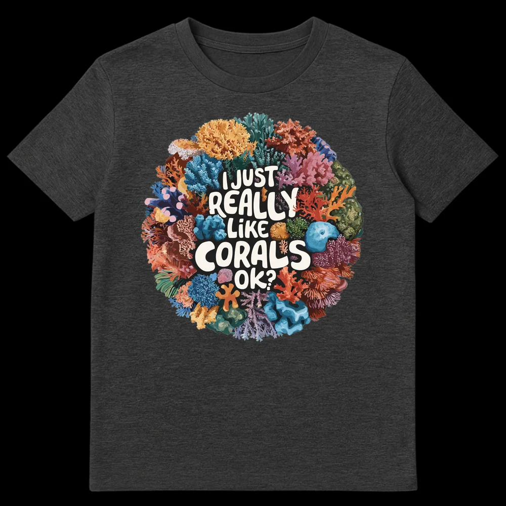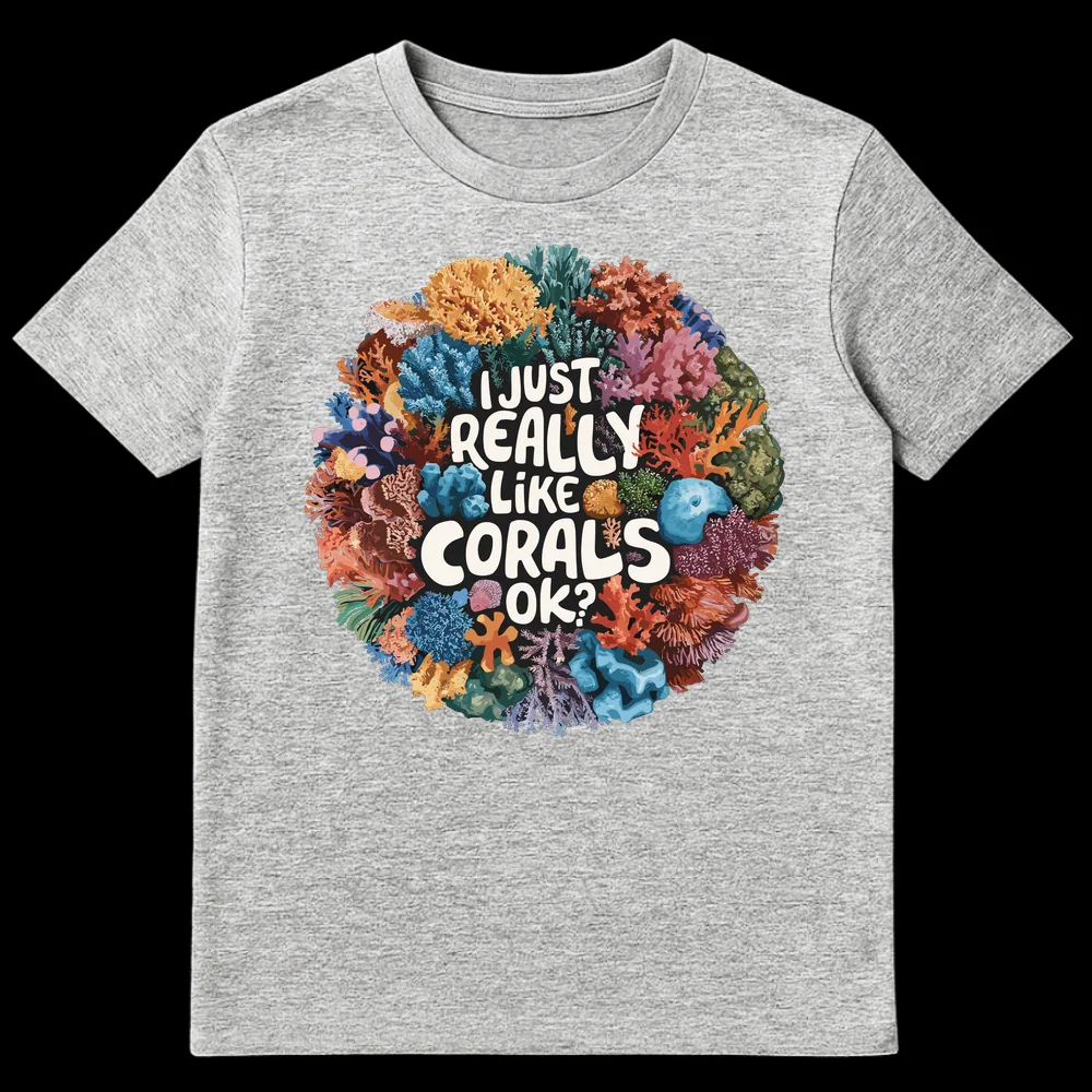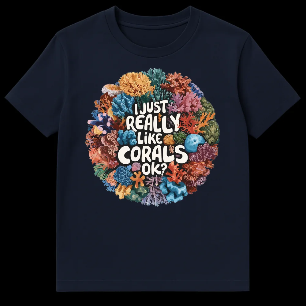 Declare your deep dive into coral obsession with this vibrant t-shirt! Featuring a stunning array of semi-realistic corals and the emphatic “I JUST REALLY LIKE CORALS OK?”, it’s a humorous nod to every marine life enthusiast’s passion. Perfect gift for scuba divers, aquarists, and ocean conservationists who truly adore the reef.