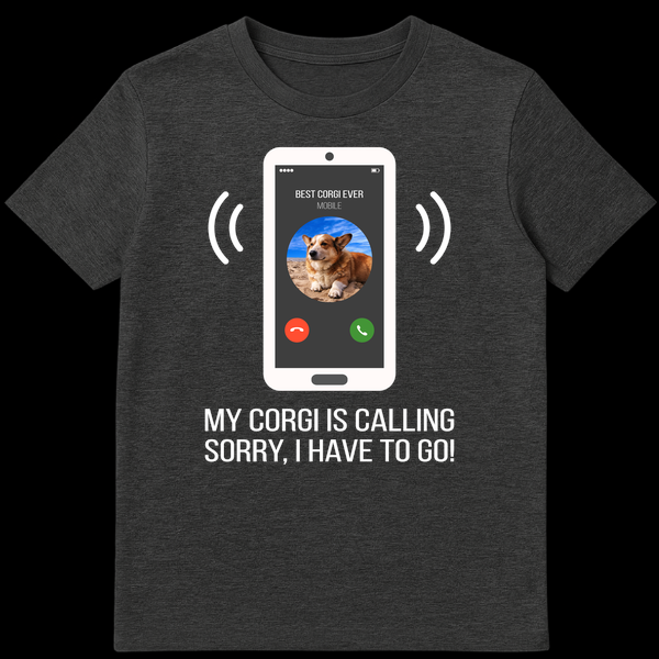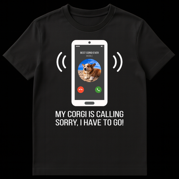 Declare your ultimate loyalty with our “My Corgi Is Calling” t-shirt, a perfect blend of humor and heartfelt affection for your favorite four-legged friend. This design showcases a stylized white smartphone with an irresistible caller ID: “BEST CORGI EVER,” complete with a adorable Corgi’s profile picture. Below it, the bold statement “MY CORGI IS CALLING SORRY, I HAVE TO GO!” humorously explains why your attention is strictly reserved for your pup. It’s a playful nod to every Corgi parent’s commitment, making it an ideal gift for birthdays, holidays, or just because for dog lovers, pet owners, and especially Corgi moms and dads who know their dog’s call always takes precedence. Stand out and share a laugh with fellow canine enthusiasts!