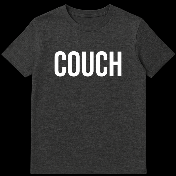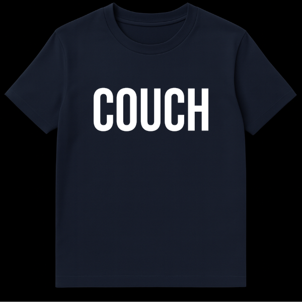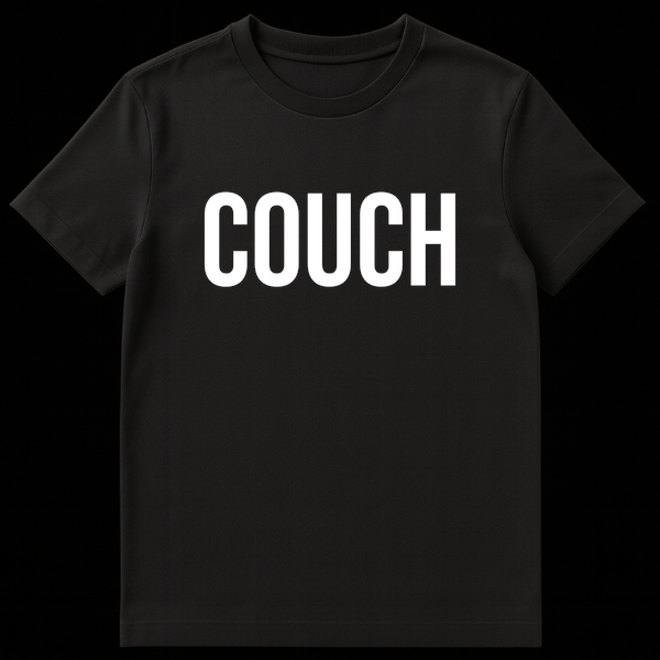 Declare your love for leisure and comfort with our ‘COUCH’ t-shirt! This iconic design features the word ‘COUCH’ in a bold, minimalist sans-serif font against a contrasting background, making a clear and humorous statement. It’s more than just a word; it’s a lifestyle. Perfect for homebodies, comfort-seekers, and anyone who understands the profound joy of unwinding on their favorite sofa. This shirt is a relatable nod to slow living, Netflix binges, and peaceful afternoons. Wear your relaxed attitude proudly or gift it to the ultimate couch potato in your life. It’s the perfect present for birthdays, holidays, or just because they appreciate the finer things in life—like a good nap. Celebrate the essential downtime we all crave with this witty and comfortable tee.