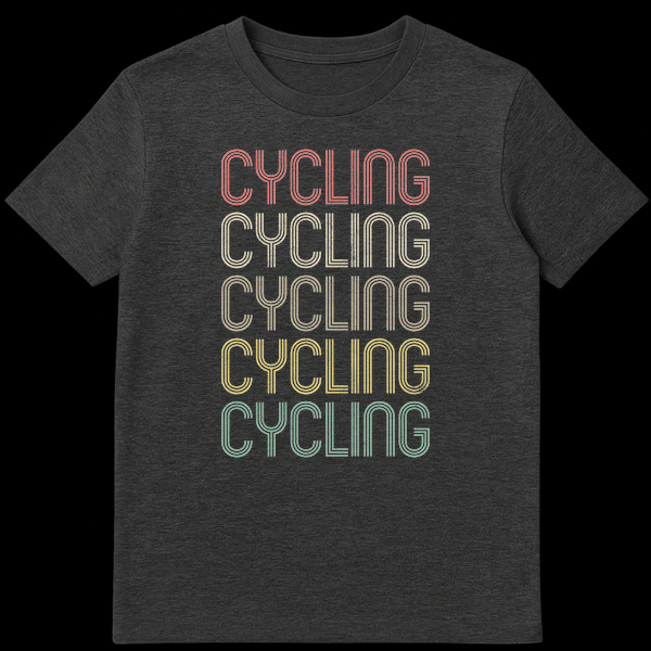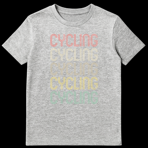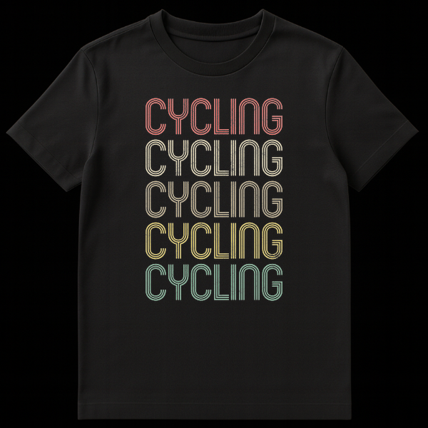 Embrace your passion for the open road with this stylish cycling t-shirt. Featuring the word “CYCLING” stacked five times in a distressed, retro-inspired font with muted, earthy tones, this design evokes a classic, worn-in aesthetic. It’s the perfect way for any cycling enthusiast to showcase their love for the sport in a subtle yet fashionable way. An ideal gift for riders who appreciate vintage style.