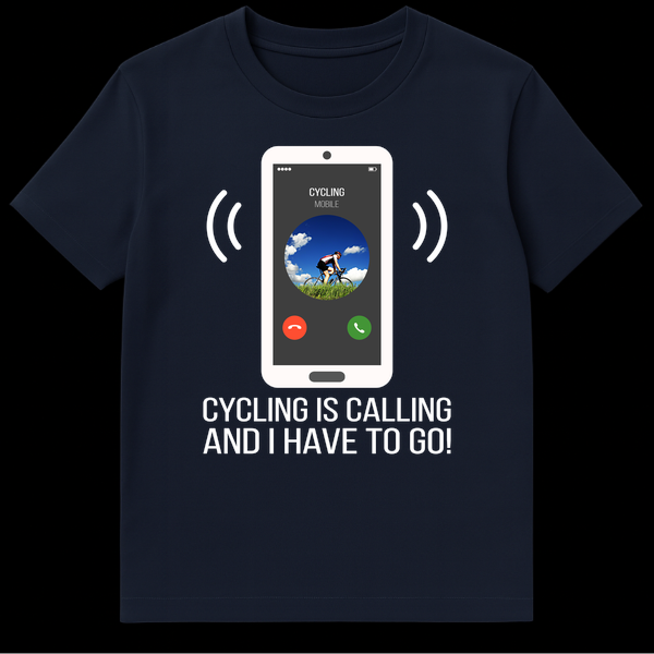 Answer the call of the open road with this dynamic cycling t-shirt! Featuring a white smartphone receiving an urgent “CYCLING” call and the bold message “CYCLING IS CALLING AND I HAVE TO GO!”, it perfectly captures the irresistible pull of your favorite sport. This design is an ideal gift for any passionate cyclist who lives for their next ride.