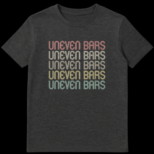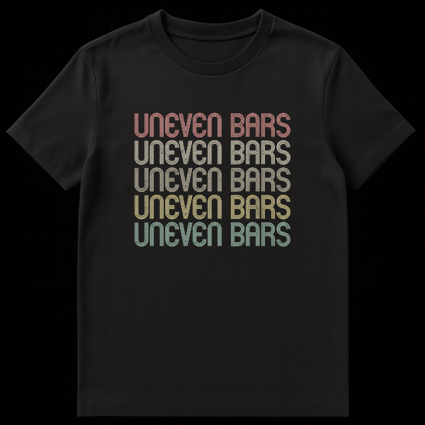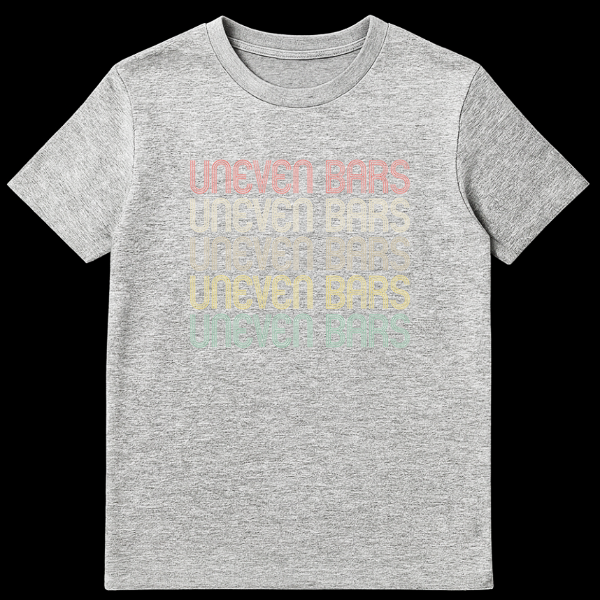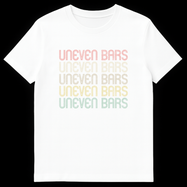 Embrace clever typography humor with the Uneven Bars T-shirt. This unique design features the phrase “UNEVEN BARS” repeated, visually embodying the concept with its retro, multi-line lettering and intentionally faded vintage colors. It’s a smart, design-centric visual pun perfect for graphic designers, typographers, and anyone who appreciates subtle, intellectual humor and a cool, nostalgic aesthetic.