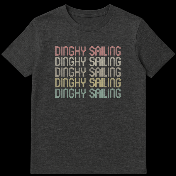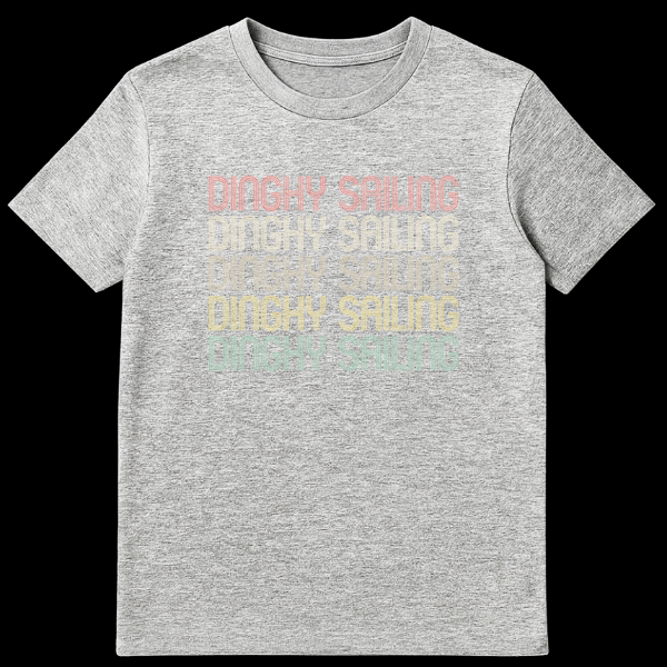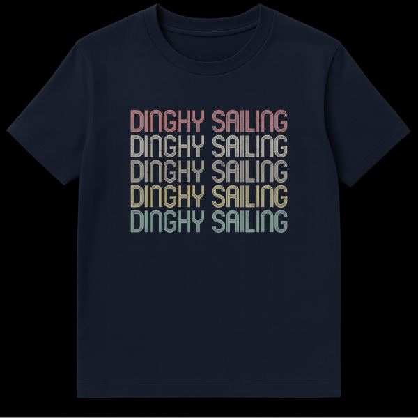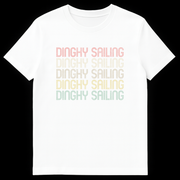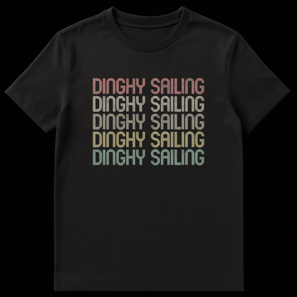 Embrace the timeless appeal of dinghy sailing with this distinctive t-shirt. Featuring the bold “DINGHY SAILING” text in a unique multi-line, retro font, it captures the spirit of traditional watersports. This design is perfect for anyone who loves the thrill of smaller boats and open water, making it an ideal gift for sailing enthusiasts.