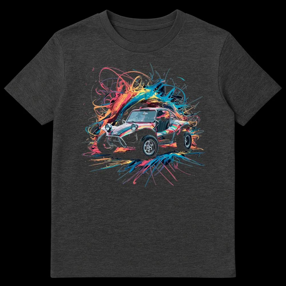 Embrace the thrill of the open road and sand dunes with our electrifying Dune Buggy T-shirt. This unique design captures a classic dune buggy in a dynamic, high-energy scene, bursting with a vibrant splash of neon pinks, oranges, blues, and greens. The abstract expressionist style perfectly conveys the speed and excitement of off-roading, making this shirt a standout piece. Crafted for comfort and style, it’s more than just apparel—it’s a wearable piece of art celebrating freedom and adventure. Ideal for dune buggy lovers, off-road adventurers, or anyone who appreciates bold pop art and a touch of retro-futuristic cool. Give the gift of dynamic style to the automotive enthusiast or free spirit in your life.