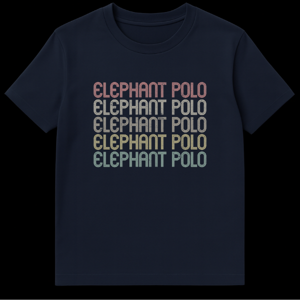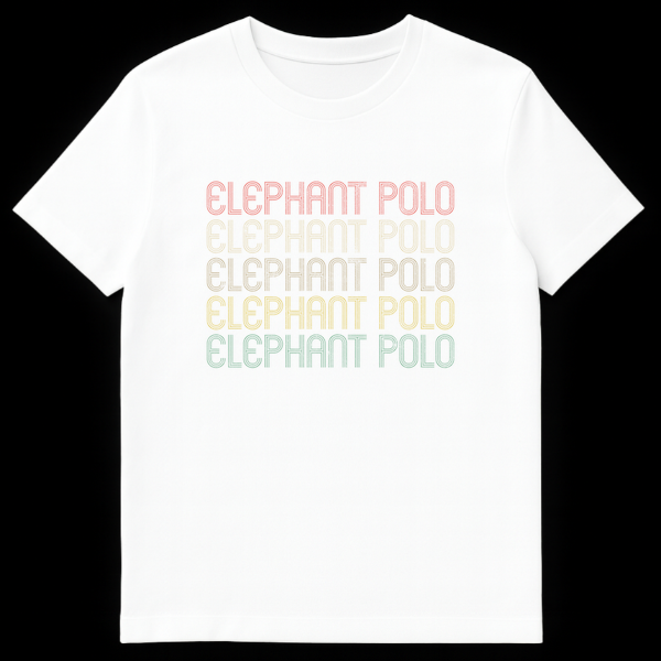 Step into the arena of unique sports with our eye-catching ‘ELEPHANT POLO’ t-shirt. The design brilliantly captures the essence of this captivating game through its distinctive retro, inline, multi-line striped style with slightly rounded edges. While the text simply states the sport, the vintage-inspired font evokes a sense of tradition and the thrill of the game, making it more than just a name—it’s an emblem. Perfect for the avid elephant polo fan, a player, or anyone who appreciates the charm of niche sports and distinctive graphic styles. This shirt is a fantastic gift for birthdays, holidays, or any occasion for those with a love for the majestic and the competitive. Show your passion for this extraordinary sport in a style that’s both classic and conversation-starting.