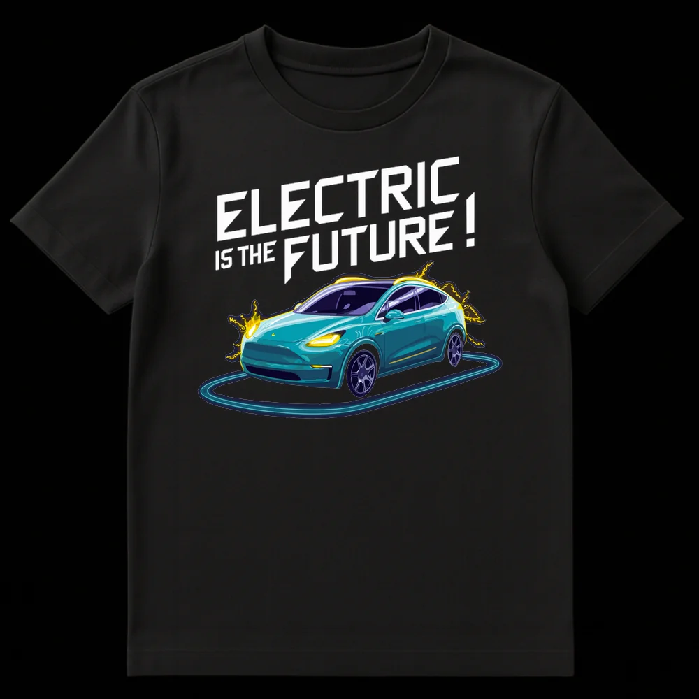 Embrace the future with our “ELECTRIC IS THE FUTURE!” t-shirt, featuring a sleek, stylized electric vehicle in a vibrant teal against dynamic electric arcs. This bold statement piece is perfect for showcasing your passion for sustainable technology and the EV revolution. It’s an ideal gift for Tesla fans, electric car owners, and anyone excited about a cleaner, tech-forward tomorrow.