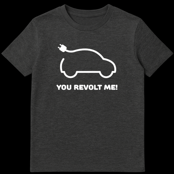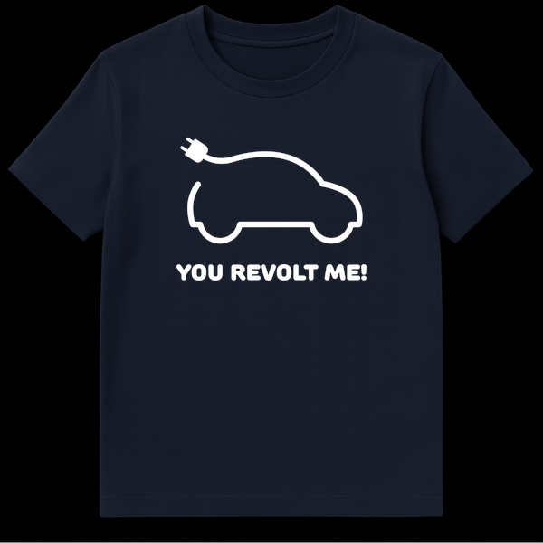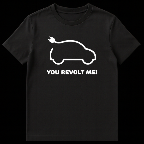 Spark conversations with this witty electric vehicle t-shirt featuring a minimalist EV icon and the playful text “YOU REVOLT ME!”. This design cleverly puns on the word “revolt,” blending a humorous complaint with a subtle nod to electrical volts. Perfect for EV owners, enthusiasts, or anyone who appreciates smart, sarcastic humor about the future of automotive technology.