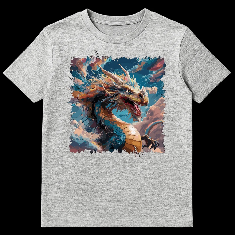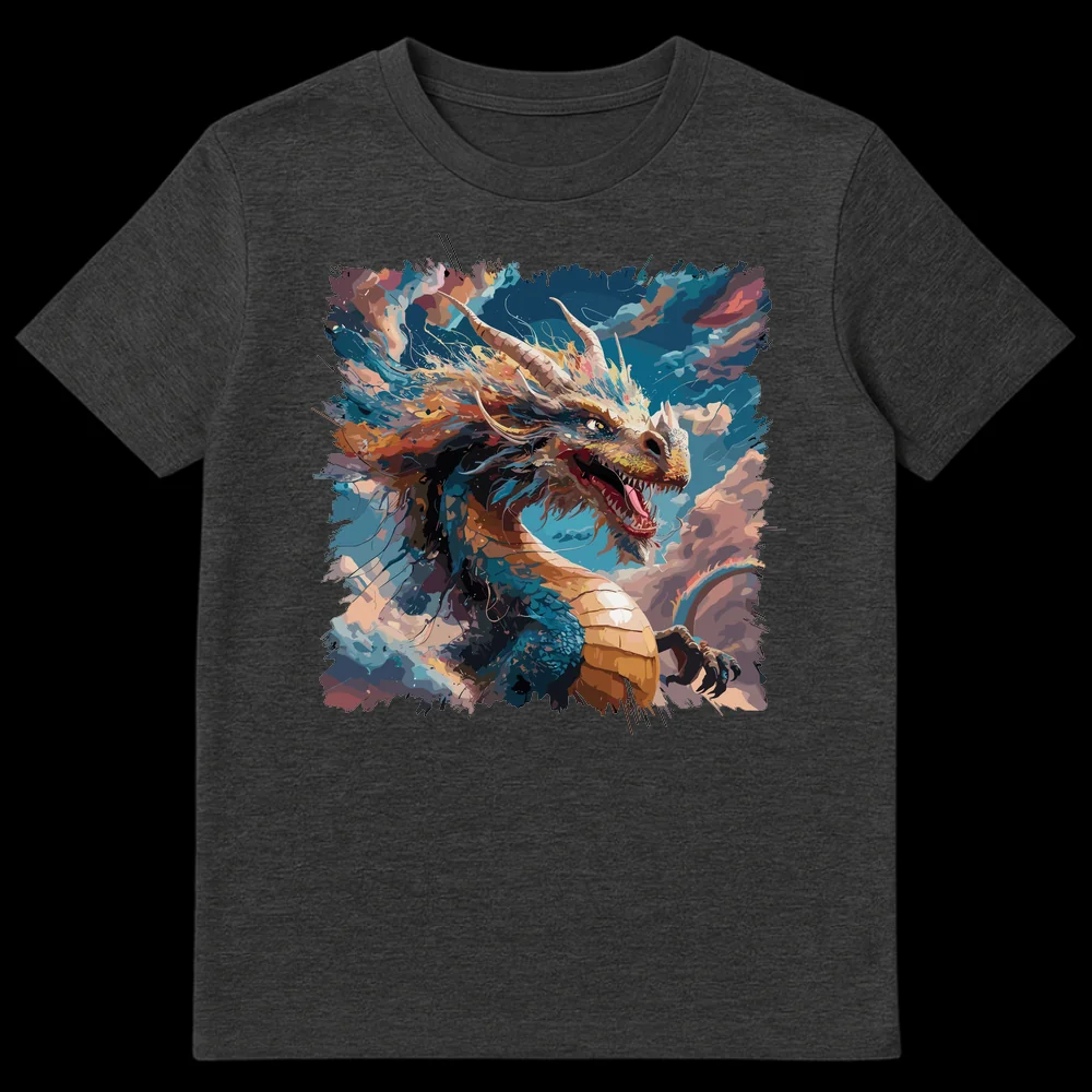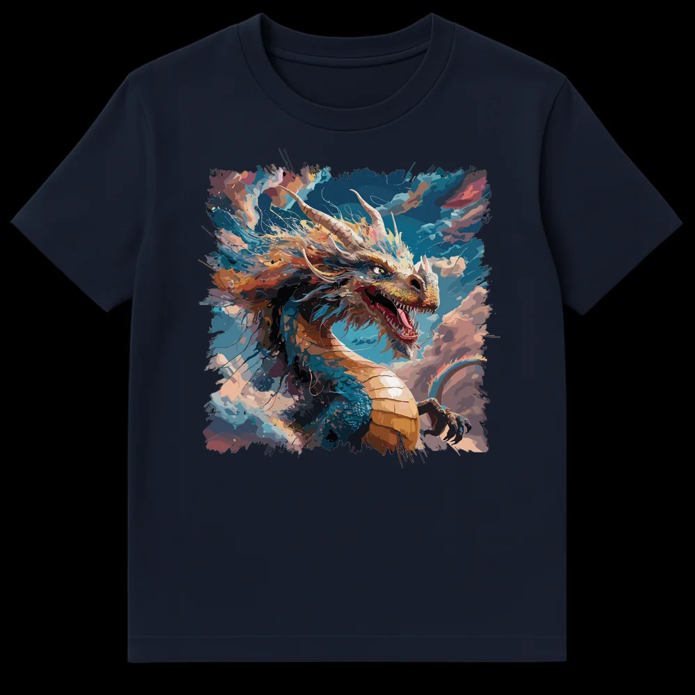 Embrace the power of the legendary with our breathtaking Dragon Lover Art Print T-Shirt. This isn’t just a garment; it’s a wearable masterpiece, showcasing a formidable Western-style dragon in a dynamic, roaring pose. Crafted with an abstract-expressionist digital painting style, the design features bold, painterly strokes and vibrant splatters of teal-blue, golden-orange, and fiery accents, evoking an energetic sense of elemental power. Set against a deep black canvas, the dragon’s piercing yellow eye, sharp teeth, and majestic horns demand attention. It’s an ideal choice for fantasy role-playing game enthusiasts, mythology buffs, or anyone seeking to express their affinity for strength, wisdom, and awe-inspiring creatures. Give the gift of epic fantasy to a gamer, a fantasy literature reader, or an art lover who values unique, impactful designs.