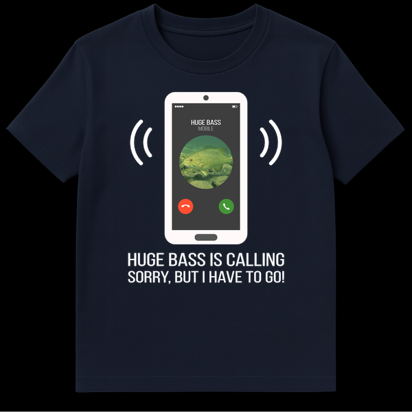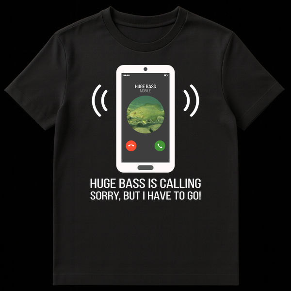 Hooked on fishing? This humorous t-shirt is designed for every angler who understands the call of the wild, or in this case, the call of the bass! The design cleverly portrays a smartphone receiving an ‘incoming call’ from “HUGE BASS MOBILE,” complete with a detailed bass fish as the profile picture and ringing signal waves. Below the screen, the bold statement “HUGE BASS IS CALLING, SORRY, BUT I HAVE TO GO!” humorously explains why plans might get suddenly cancelled. It’s a perfect conversation starter and a nod to the undeniable passion for fishing. Ideal for bass fishing enthusiasts, fly fishermen, or anyone who loves a good fishing joke. This shirt makes an excellent gift for birthdays, Father’s Day, or any occasion for the dedicated fisherman in your life.