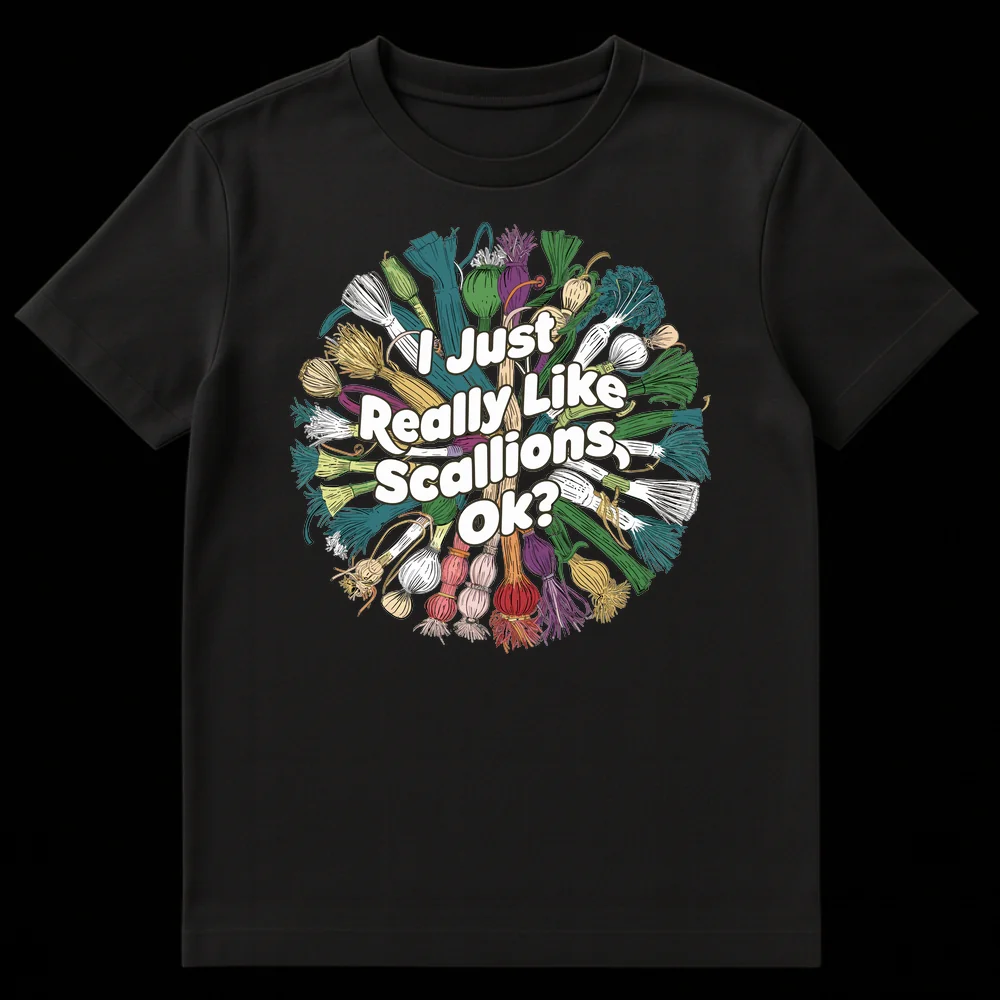 Declare your love for green onions with this unique ‘I Just Really Like Scallions, Ok?’ t-shirt. Featuring a detailed, hand-drawn arrangement of various alliums, this design playfully highlights an intense, perhaps quirky, culinary preference. It’s the perfect gift for foodies, home cooks, or anyone who appreciates wholesome food humor and fresh ingredients.