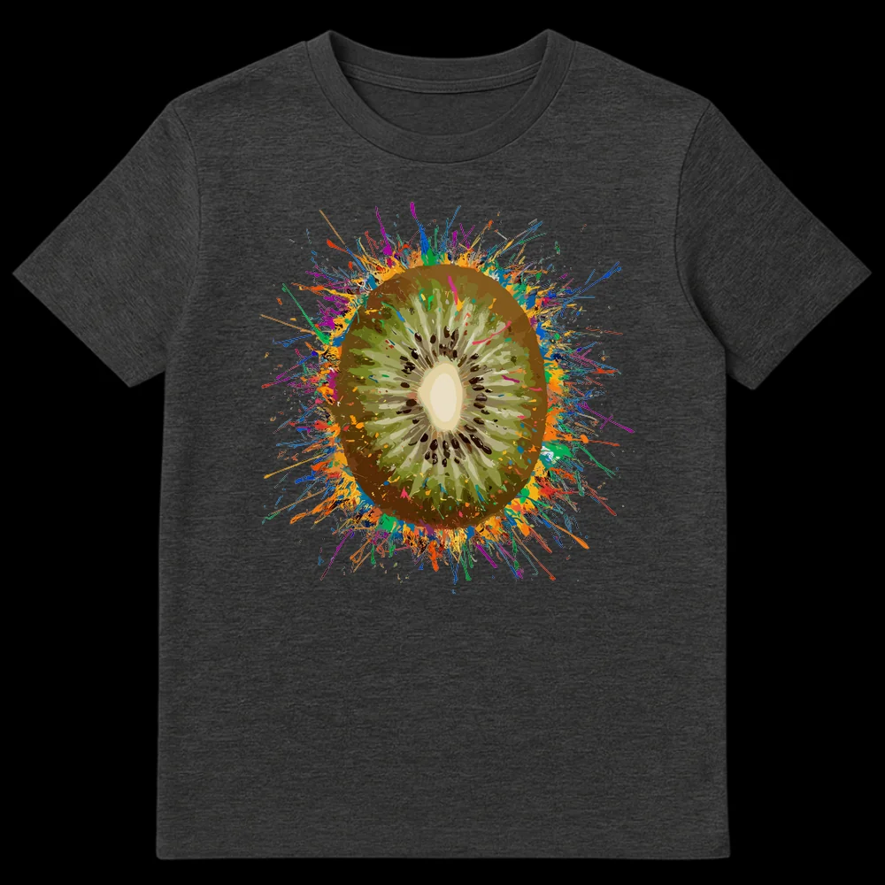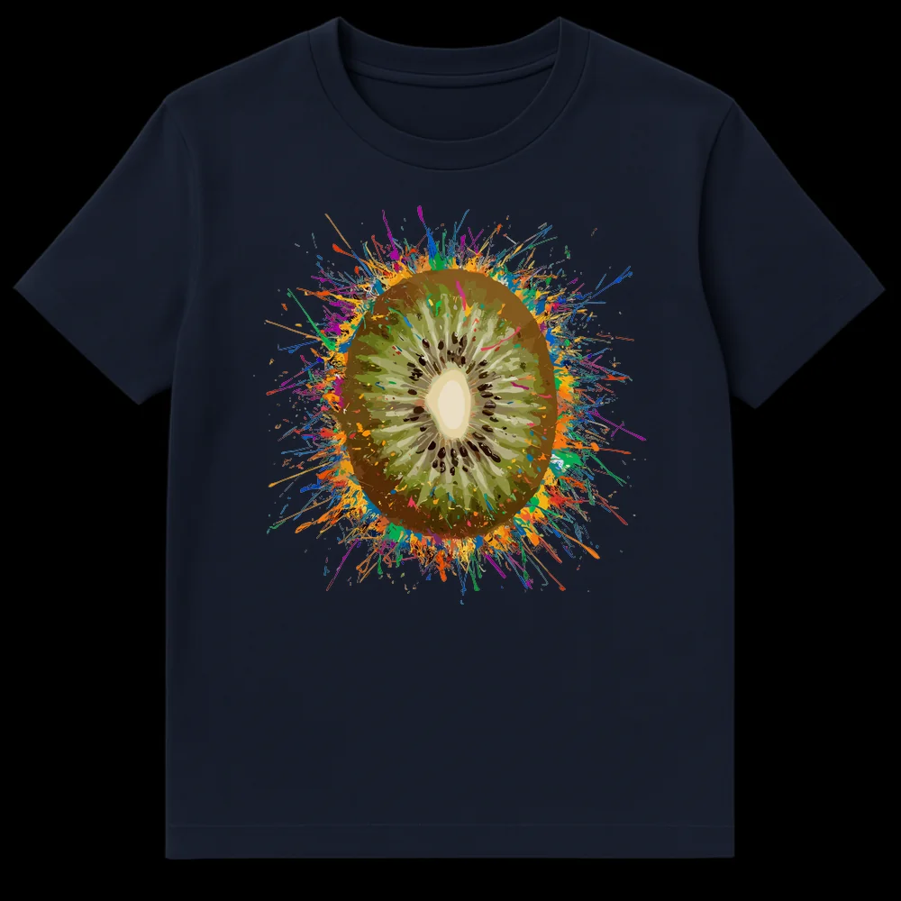 Unleash your vibrant spirit with this unique t-shirt featuring a dynamic kiwi fruit cross-section exploding with colorful paint splatters. This eye-catching design merges natural beauty with abstract expressionist art, celebrating freshness and energy. It’s a perfect gift for art enthusiasts, fruit lovers, or anyone who appreciates bold, expressive fashion.